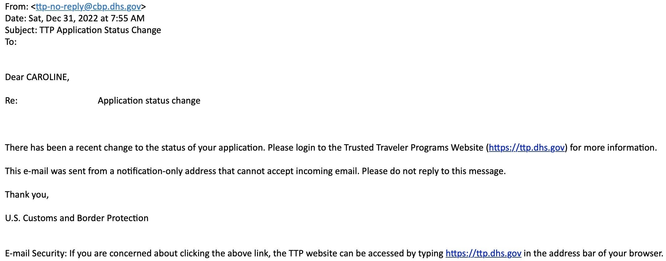 The next day, I received confirmation via email that my Global Entry application was complete.