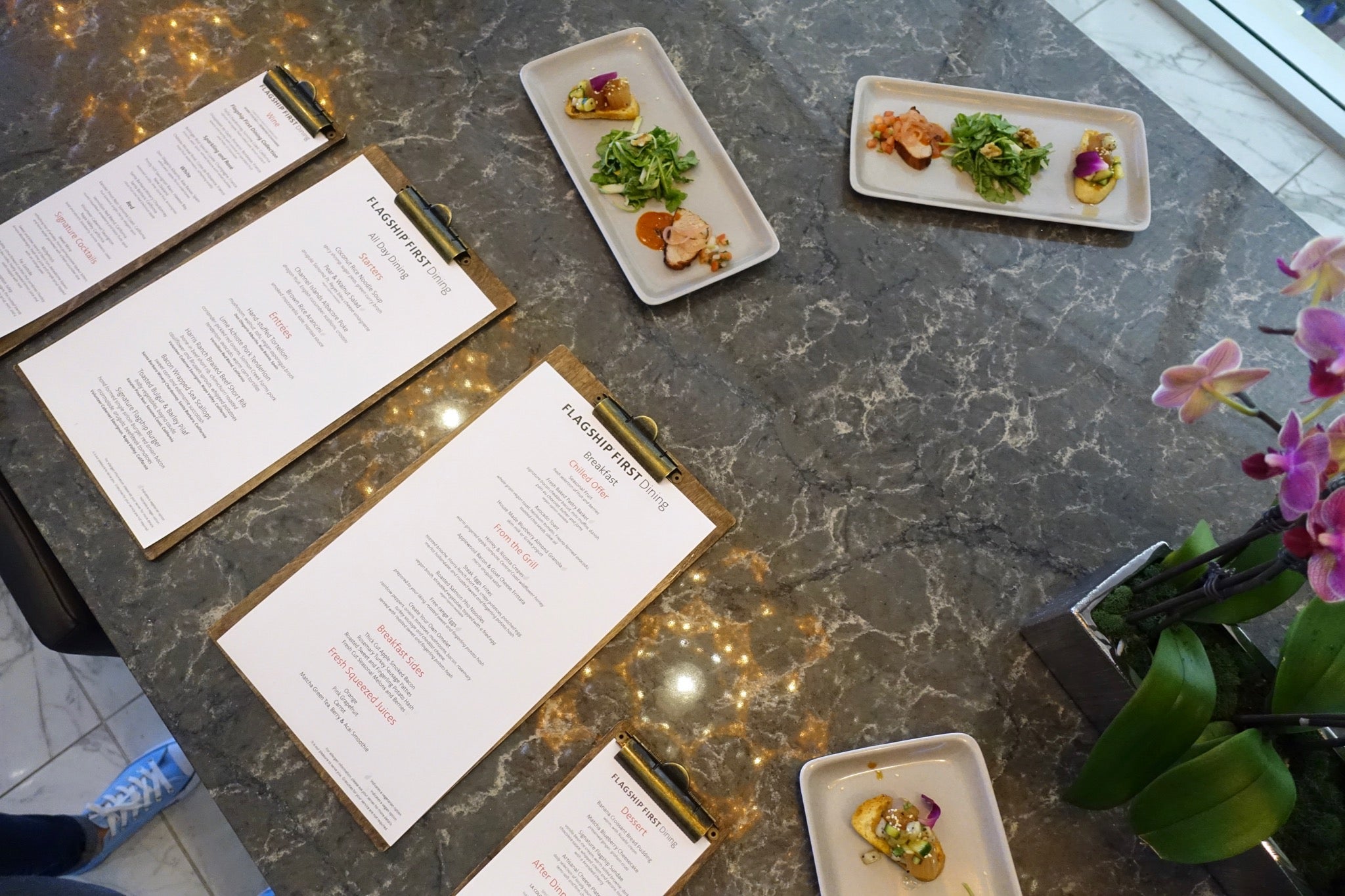 Our final stop of the tour was the new Flagship Lounge, which you can read more about in TPG contributor Ethan Steinberg's review. What no one was expecting, however, was the opportunity to visit and meet the executive chef of American's exclusive Flagship First Dining room, ordinarily available only to passengers traveling in first class on a three-cabin American Airlines flight. While we didn't get to have a full sit-down meal, we sampled the pear and walnut salad, the albacore poke and the pork tenderloin. None of the dishes disappointed.