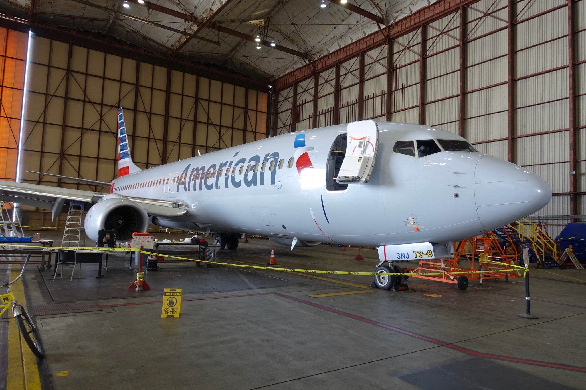 In addition to the Dreamliner, we saw a young Boeing 737-800, registered N989NN, which was taken out of service on August 13 for repairs to a fuel tank.