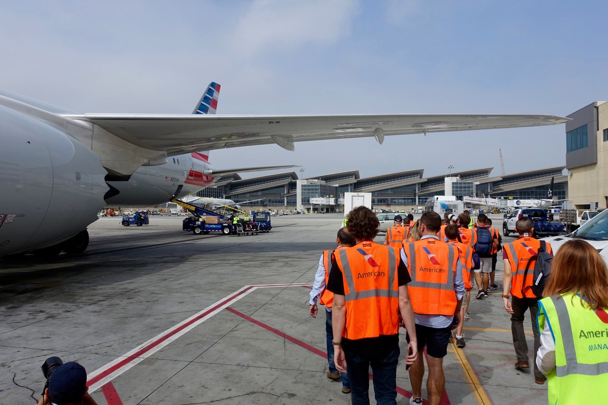 AirlineGeeks.com celebrated, a couple days in advance, by partnering with American Airlines to offer a select few AvGeeks rare behind-the-scenes tours of airports, maintenance hangars, operations centers and more at 13 hubs and facilities across the United States as well as at London Heathrow (LHR). Tickets were free, but only about 100 of them were made available, so they got snapped up within minutes after going online in early July. This year, I was among the lucky few to snag a ticket for the Los Angeles International Airport (LAX) tour.