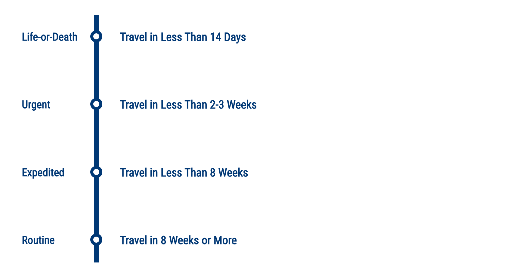 • To aid in the case of life-or-death emergencies such as serious illnesses, injuries or deaths in your immediate family (the U.S. government considers parents or legal guardians, children, spouses, siblings and grandparents to be "immediate family" — aunts, uncles and cousins do not count) that require travel within 72 hours