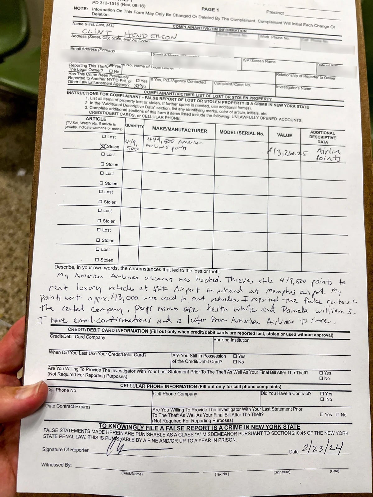 Once I was done, they also told me that the NYPD doesn't give a copy of the police report to victims of crimes. I was pretty dumbfounded at that news, explaining that American Airlines was demanding a formal police report if I wanted to get my missing miles back.