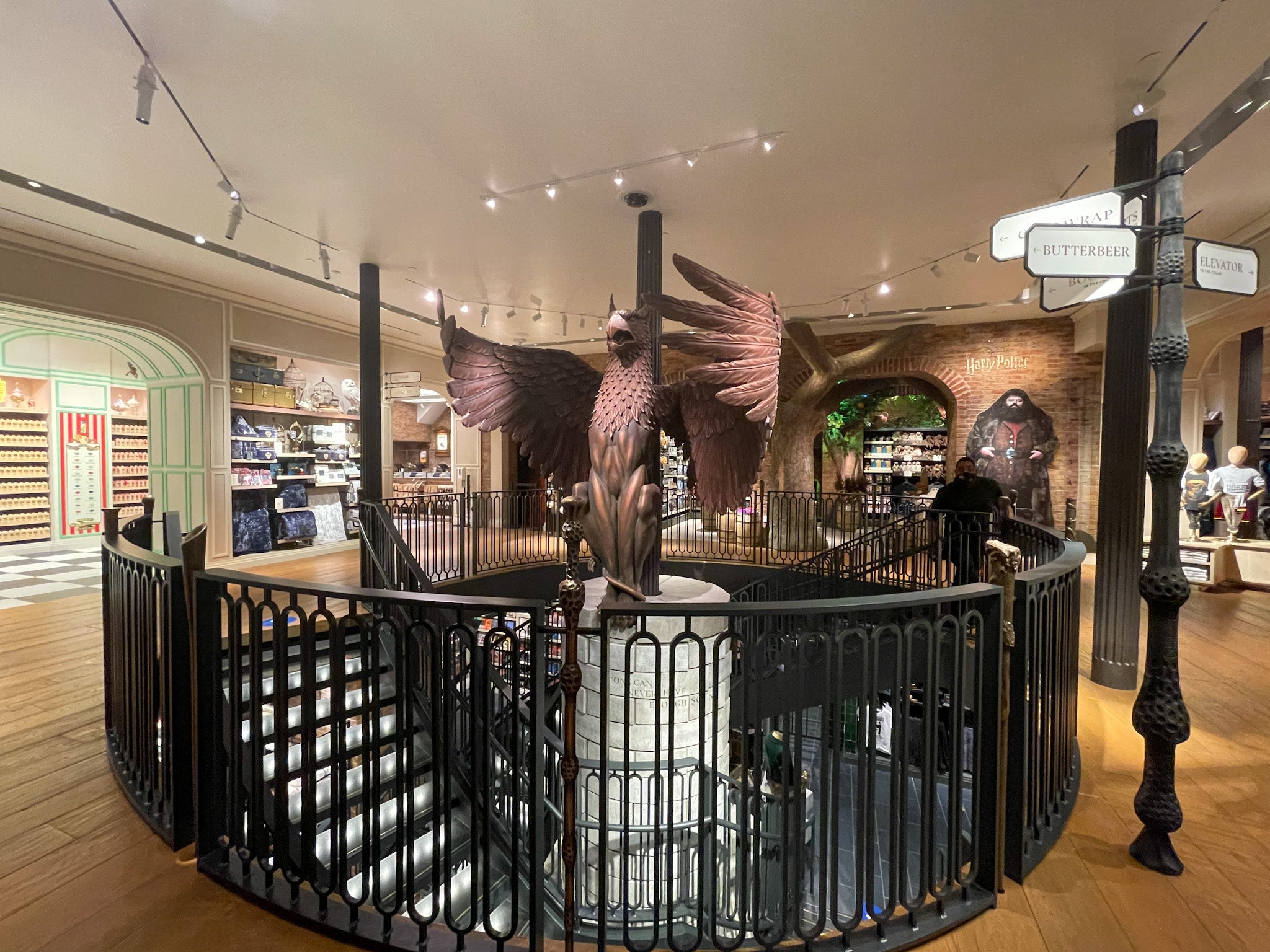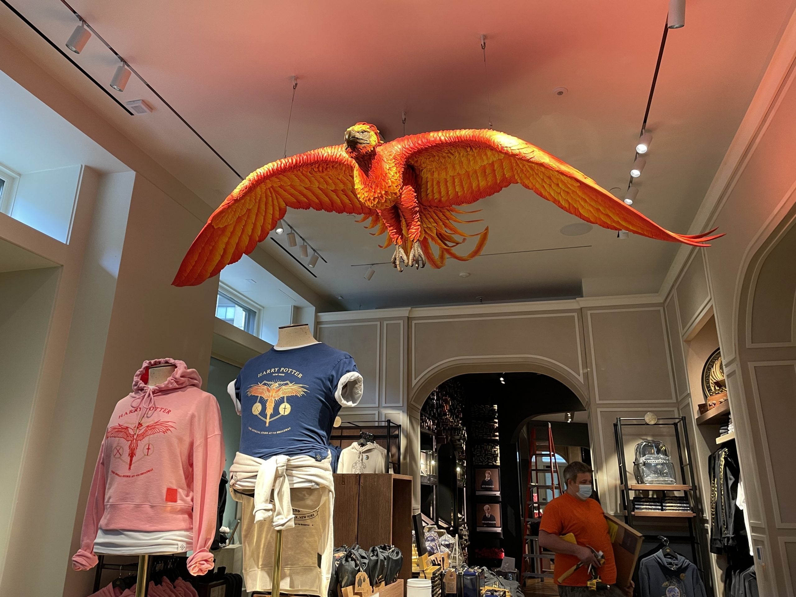 Entering from Fifth Avenue (at Broadway), guests are immediately greeted by an incredible model of Fawkes the Phoenix, which weighs over 200 pounds and soars above a section of the store with items you'll only find at the New York City flagship (think: Harry Potter New York-branded shirts and accessories).