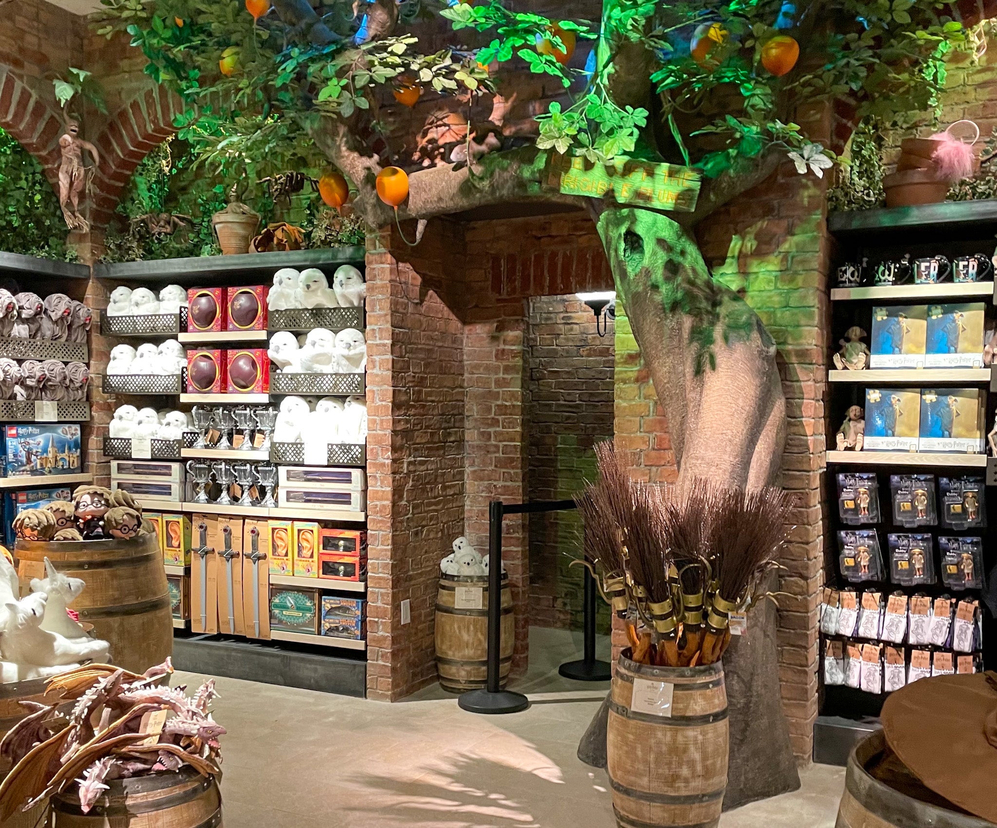 Kids can shop for Harry Potter-themed plush toys and games beneath a Dirigible plum tree before grabbing a Golden Snitch wand (available only at the New York flagship) from the sprawling Wand Shop that has the deliberately chaotic feel of Ollivander's.