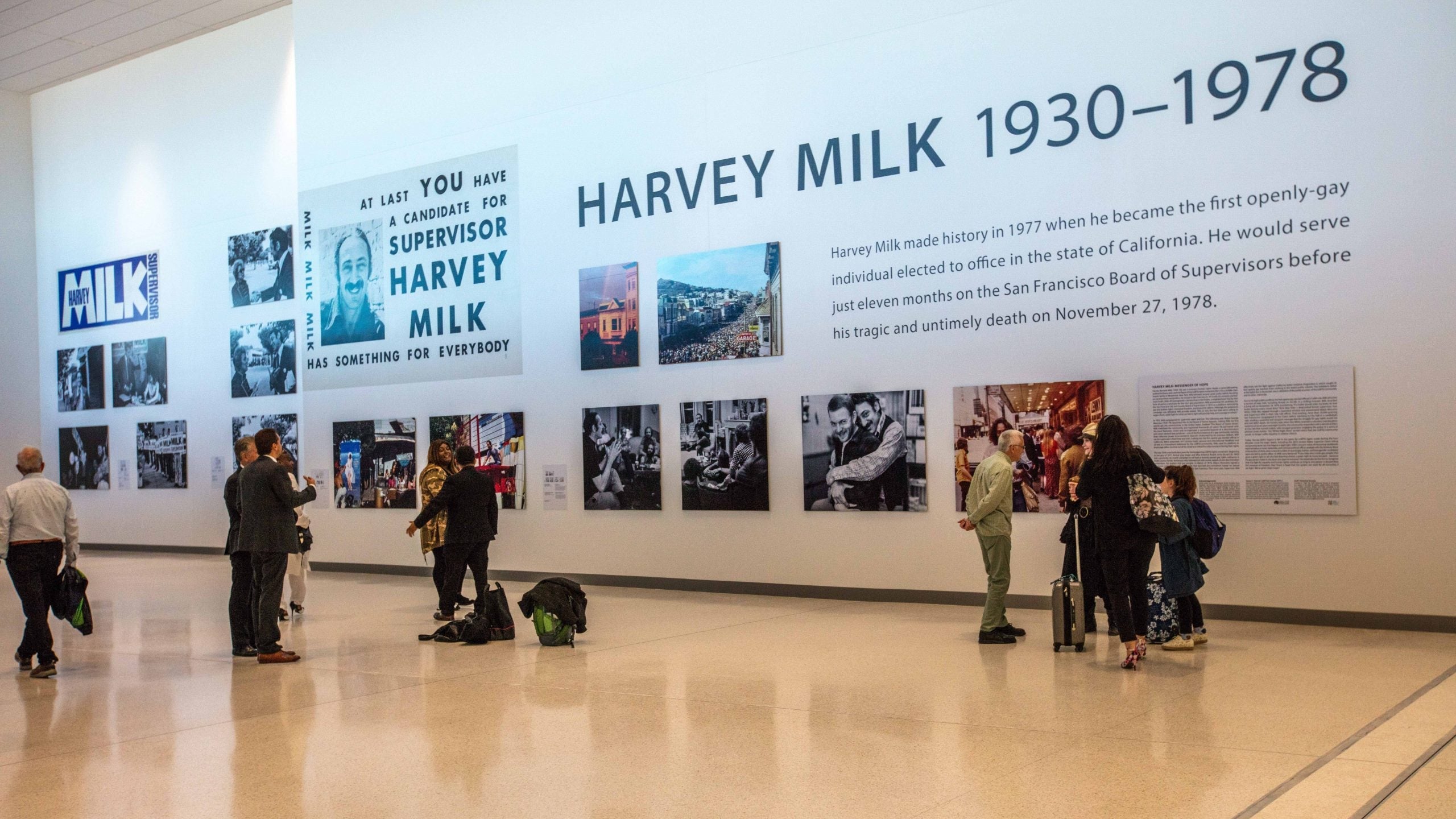 The crown jewel of the 25-gate facility at Harvey Milk Terminal 1 is the area that honors the life and legacy of the first openly gay elected official in the history of California with content from the exhibit Harvey Milk: Messenger of Hope.