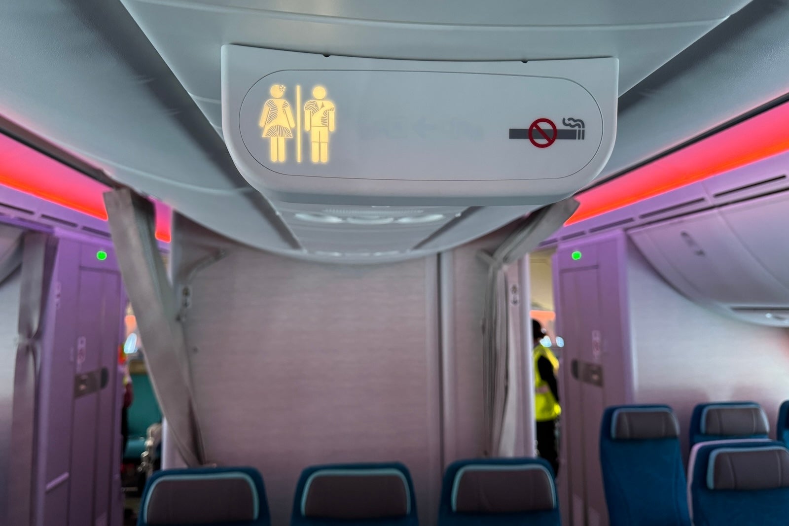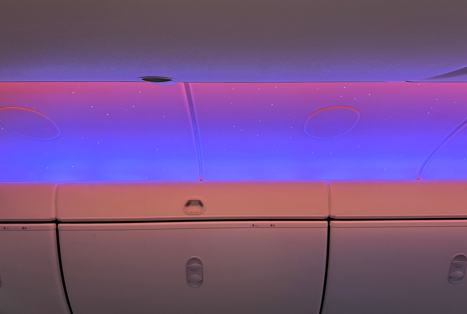 One downside is the lack of overhead air nozzles, so passengers are at the mercy of flight attendants to keep the cabin at a comfortable temperature.