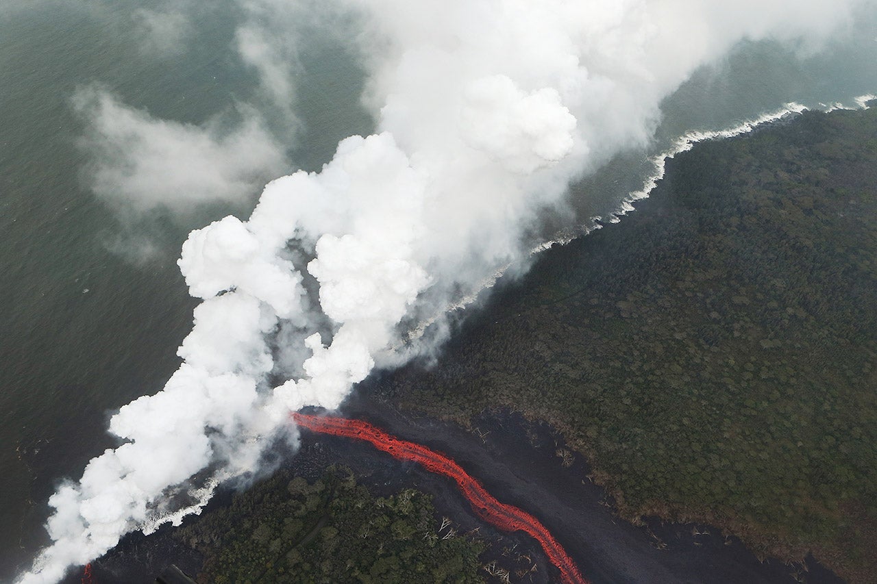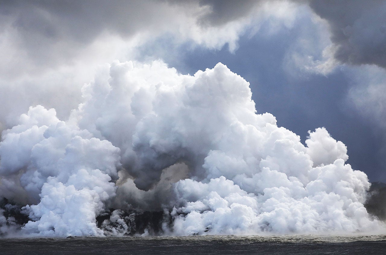 Over the weekend, massive lava flows from the Kilauea volcano surged over the southeast shores of the island into the Pacific, forming thick, toxic clouds known as "laze."
