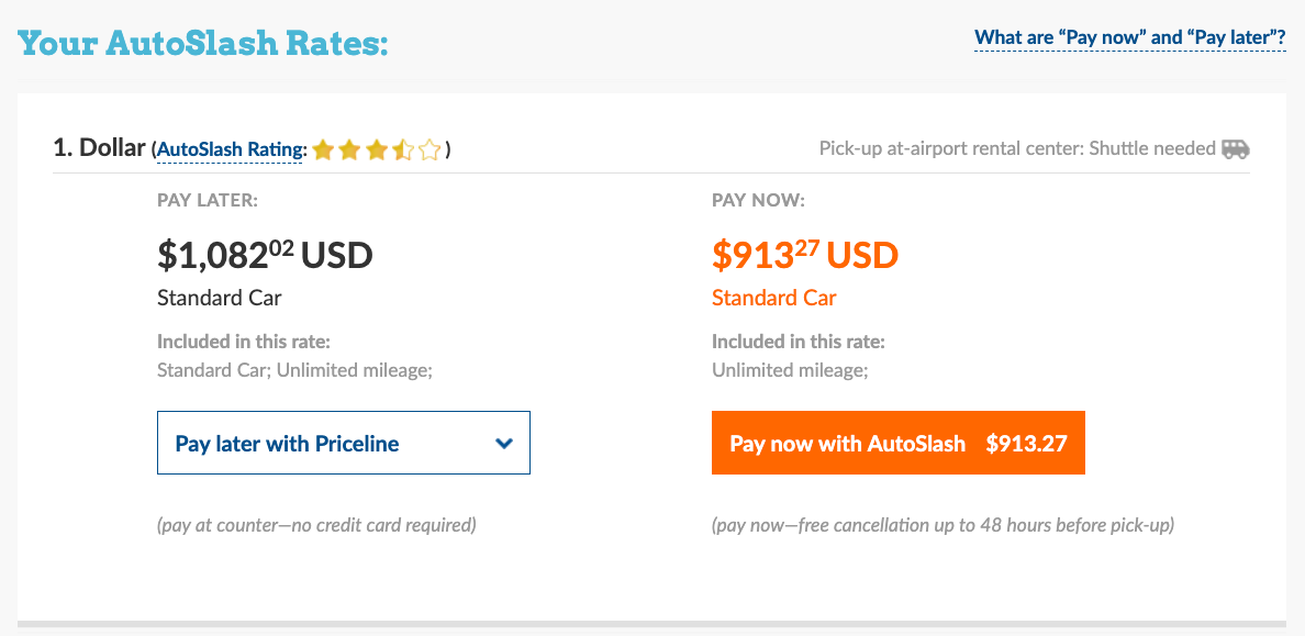 AutoSlash found a deal for $913 per month for a standard car.