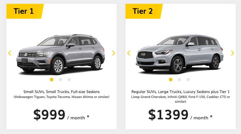 Subscribers to Hertz My Car have the flexibility to choose from two subscription tiers. Tier One ($999 monthly, plus taxes) includes full-size sedans, small SUVs and trucks, while Tier Two ($1,399 monthly, plus taxes) offers luxury sedans, regular SUVs and large trucks. According to a Hertz press release, customers can exchange their vehicle twice a month to another make or model within the tier "so they always have the vehicle that best fits their needs."