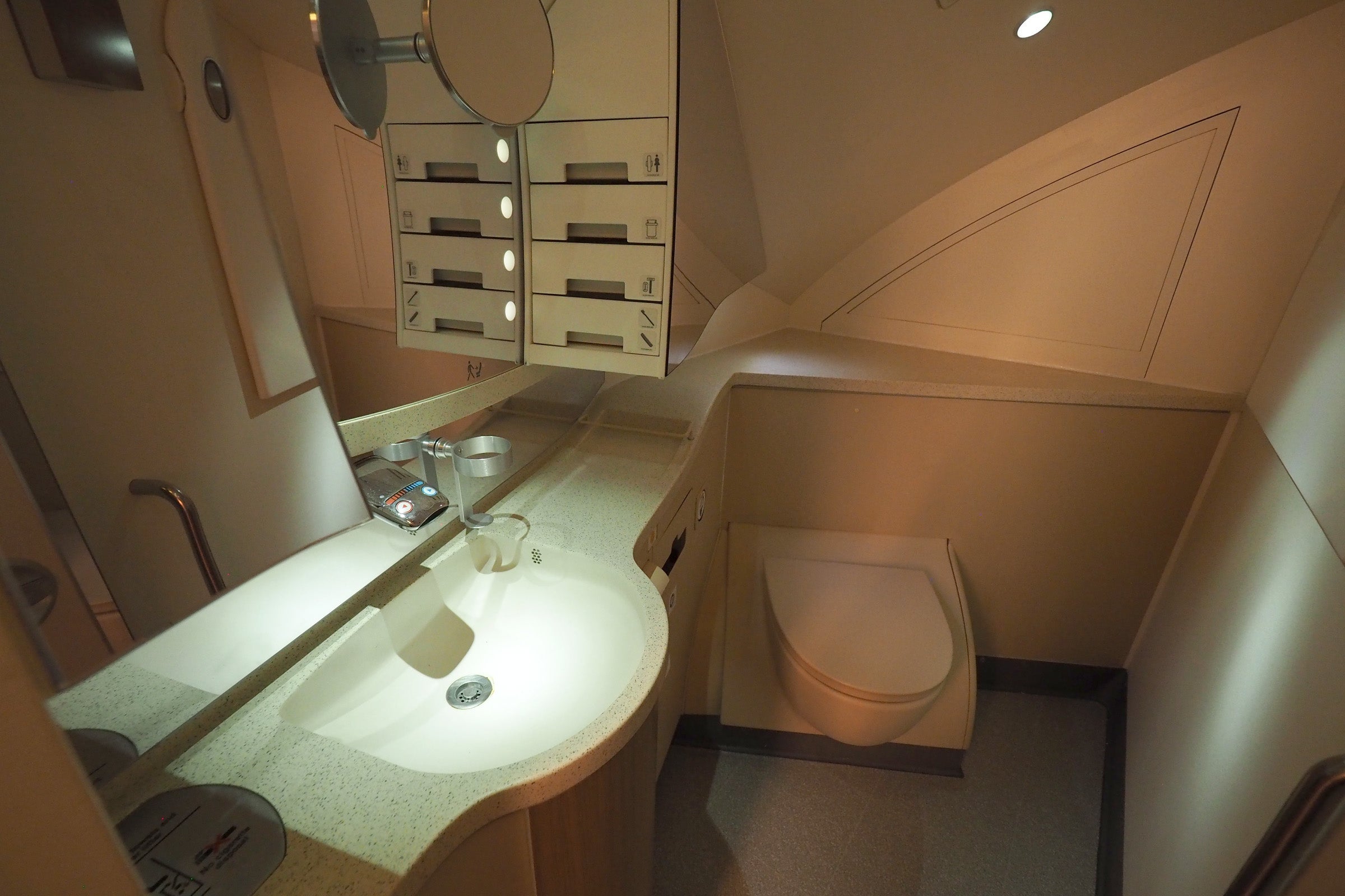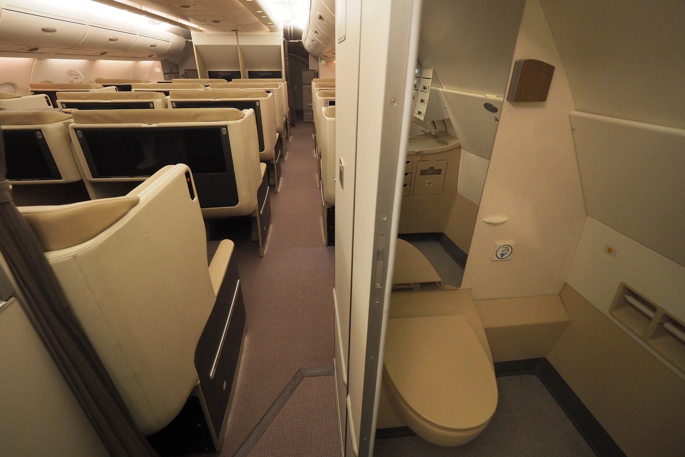 Business class is spread between two cabins, and occupies most of the upper deck.