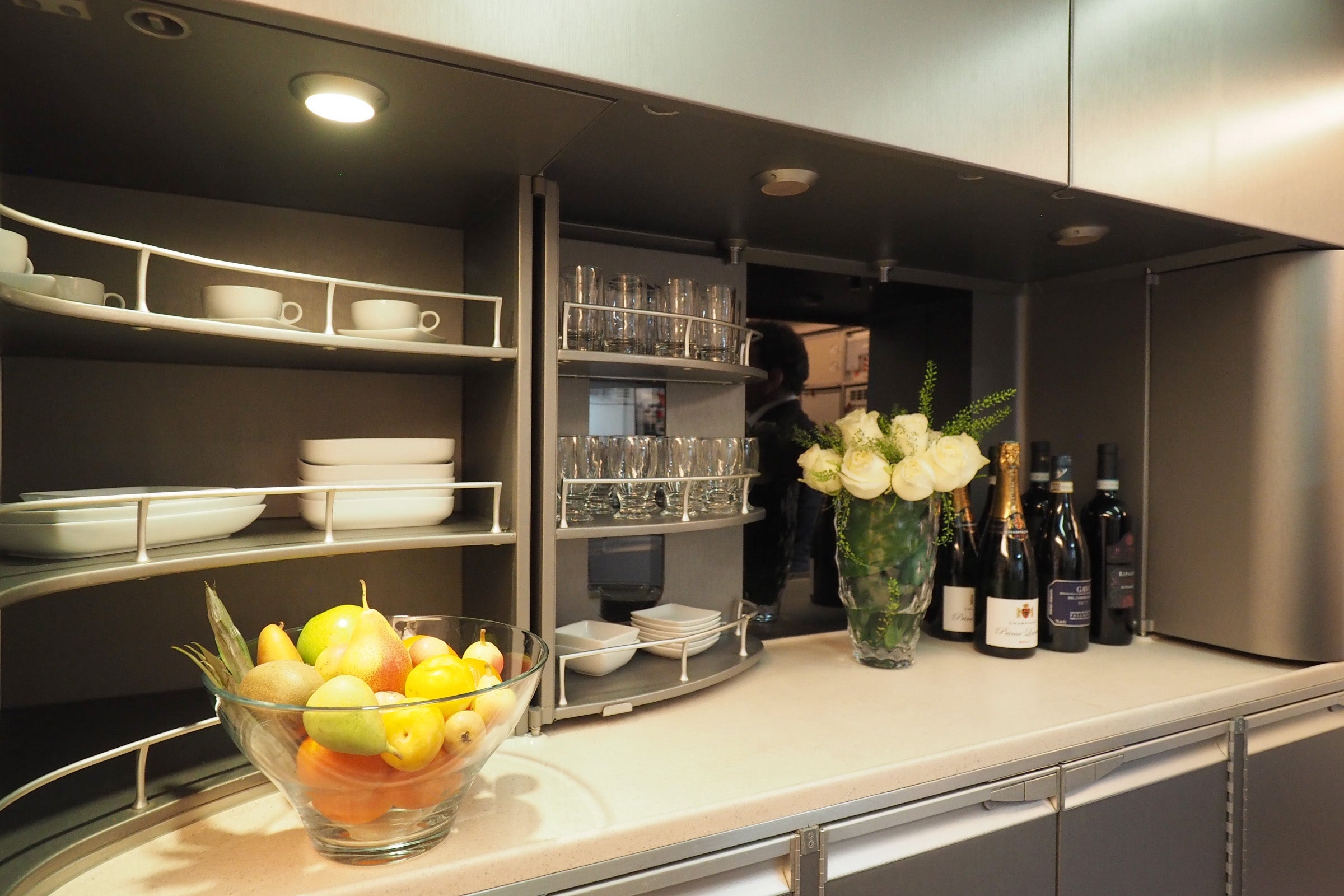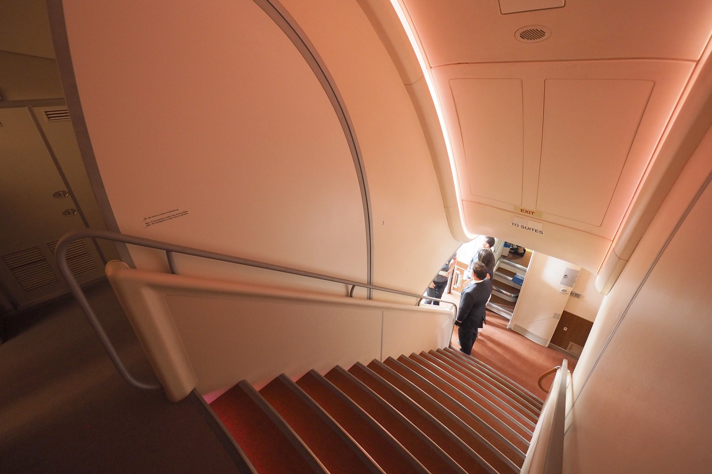 There's even a walk-up bar on the upper deck, which was set up in an in-flight configuration for our tour.
