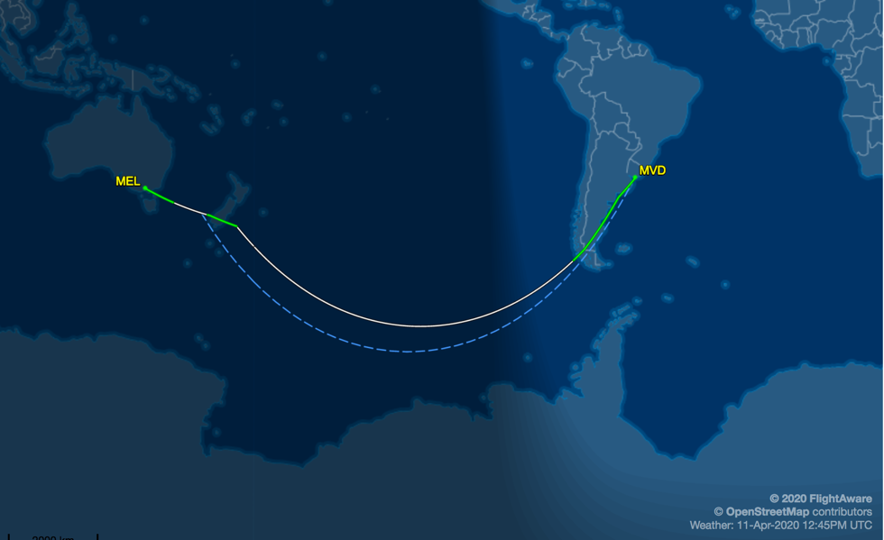 The specially-equipped aircraft that operated this repatriation flight, 9H-SUN, departed Montevideo at 4:44 a.m. GMT April 11, and arrived in Melbourne at 9 p.m. GMT. The flight passed over to the Antarctic border — and while transoceanic flights in the Southern Hemisphere are rare, the A340 is well suited to this type of operation. With four engines, it's not subject to ETOPS (Extended-range Twin-engine Operational Performance Standards) which other long-haul aircraft like the Boeing 787 and Airbus A350 must take into consideration. Under ETOPS, twin-engine aircraft must operate within a certain distance (in minutes) of a suitable diversion airport in the event of an engine failure.