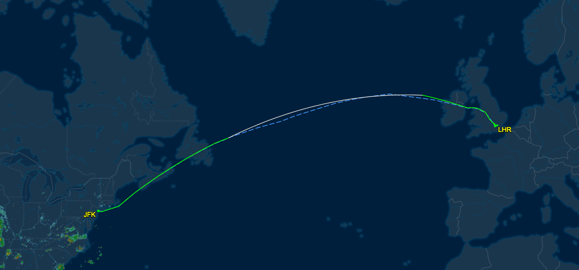 Let's consider a British Airways flight from JFK to LHR on a Boeing 747. The route was planned to depart JFK, via a variety of waypoints and routes.