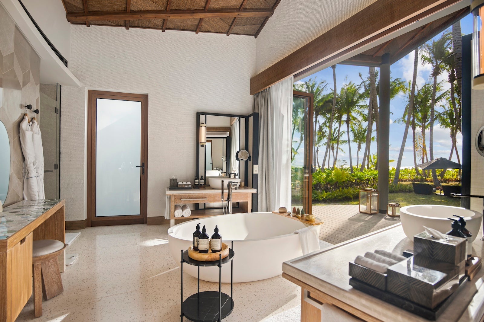 Earlier this year, the Waldorf Astoria Seychelles Platte Island opened with 50 seafront villas, including one- to three-bedroom options and a five-bedroom villa fit for a family or larger group. The villas are bright and airy with canopy beds, pitched ceilings, huge walls of windows that open, outdoor showers and personal concierge service waiting to assist with any and every need.