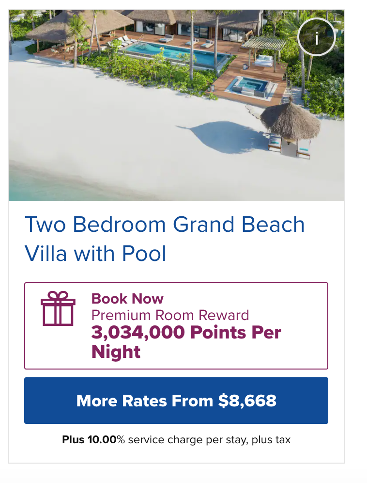 Of course, if you really wanted to go crazy (and have millions of Hilton points to spare), you could book the two-bedroom grand beach villa for a cool 3,034,000 Hilton Honors points per night.