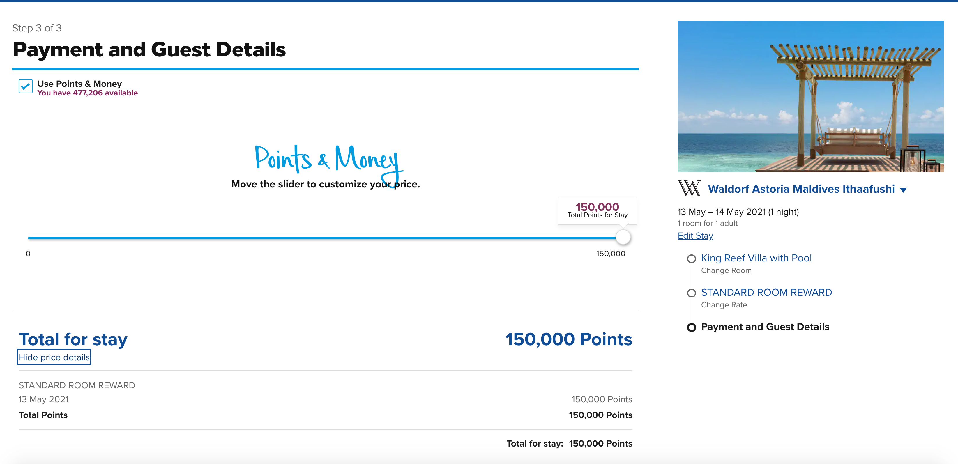 We did ask if other Hilton properties might go to 150K as a standard redemption. Hilton said, "Waldorf Astoria Maldives is a special property. At this time, we do not have plans to bring any other current properties up to the 150,000 Point level."