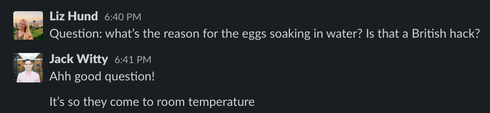 Big shoutout to Jack for giving us the tip on bringing your cold ingredients to room temperature!