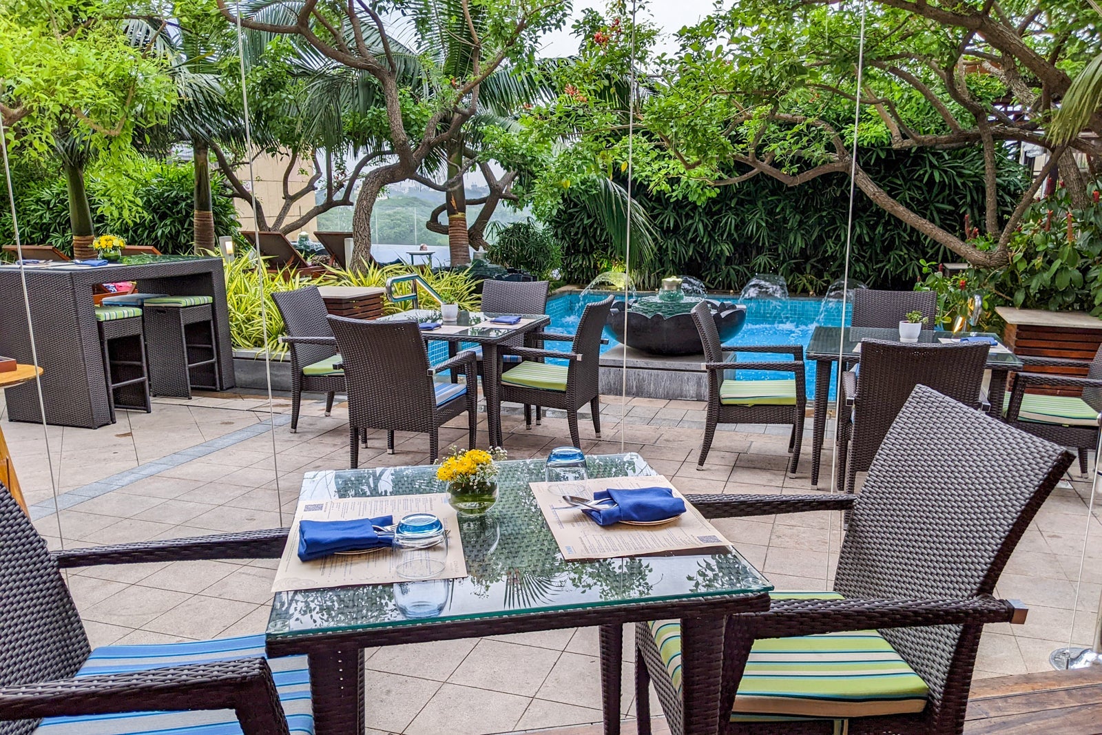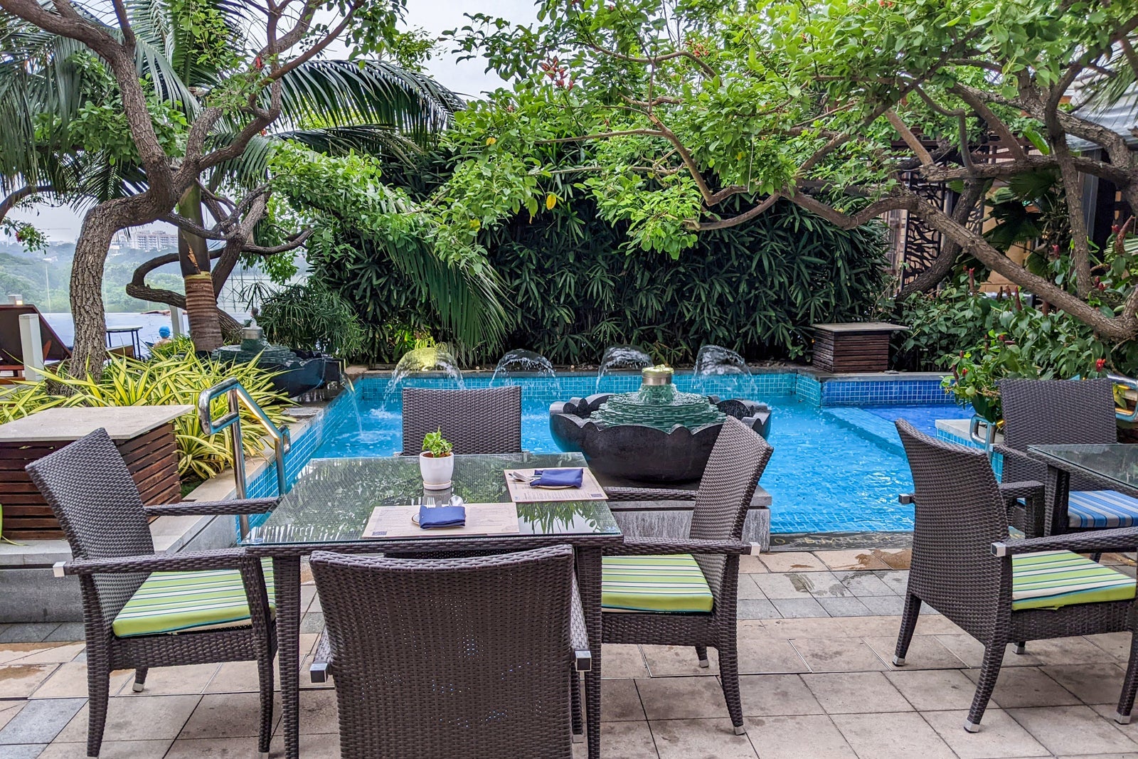 You can choose between lunch and dinner at either Mikusu or Tiamo. After looking at photos and reviews of both restaurants, I choose the poolside Tiamo for a 6 p.m. seating.