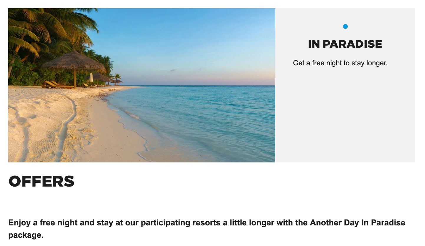 Hilton is currently running a promotion where guests can earn a free night after booking four to five consecutive nights at participating resorts in the U.S., the Caribbean and Latin America.
