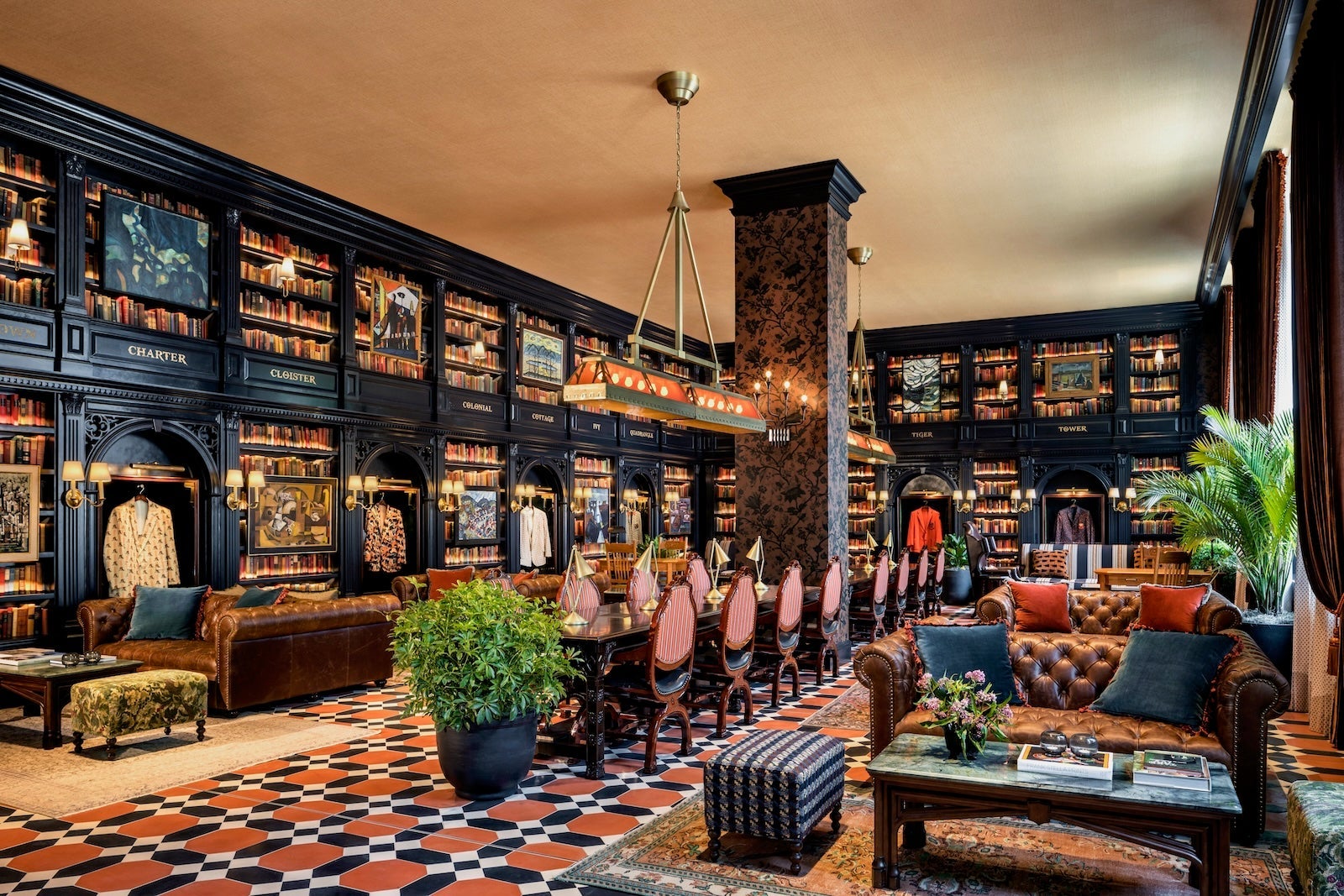 Like other Graduate hotels, the property gives a nod to influential alumni of the nearby university. You'll also find hints of Princeton itself in the decor, like a hand-carved wooden reception desk flanked by four wooden tiger statues (paying homage to the Princeton Tiger mascot). Orange and black floor tiles in the two-story lobby are in line with Princeton's colors, and you'll even find a collection of Reunion Jackets, which alumni receive at their 25th reunion, dotting the well-stocked bookcases.