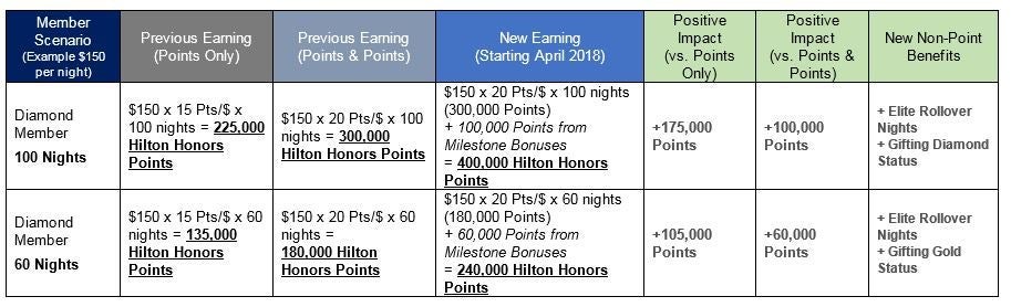 Overall, these changes are pretty positive for the Honors program. Those who will see the biggest changes are those at the top — the Diamonds. They'll be earning more redeemable points for each stay, as well the ability to earn Milestone Bonuses for more frequent stays. At the same time, Gold members should expect a smaller — yet still positive — change to their earning structure, at .5 more points per dollar spent.