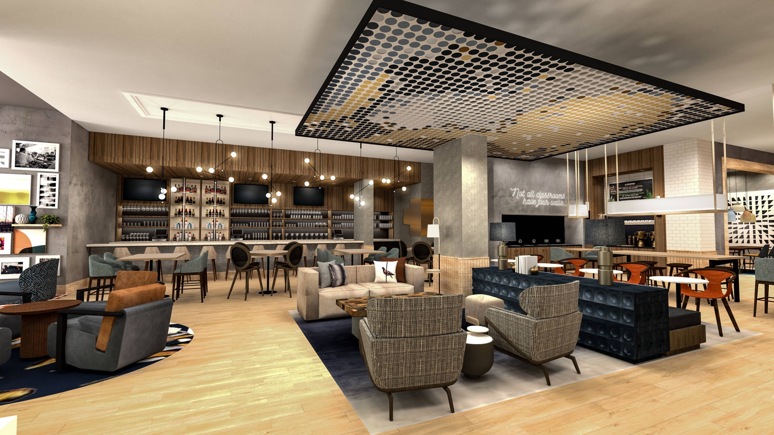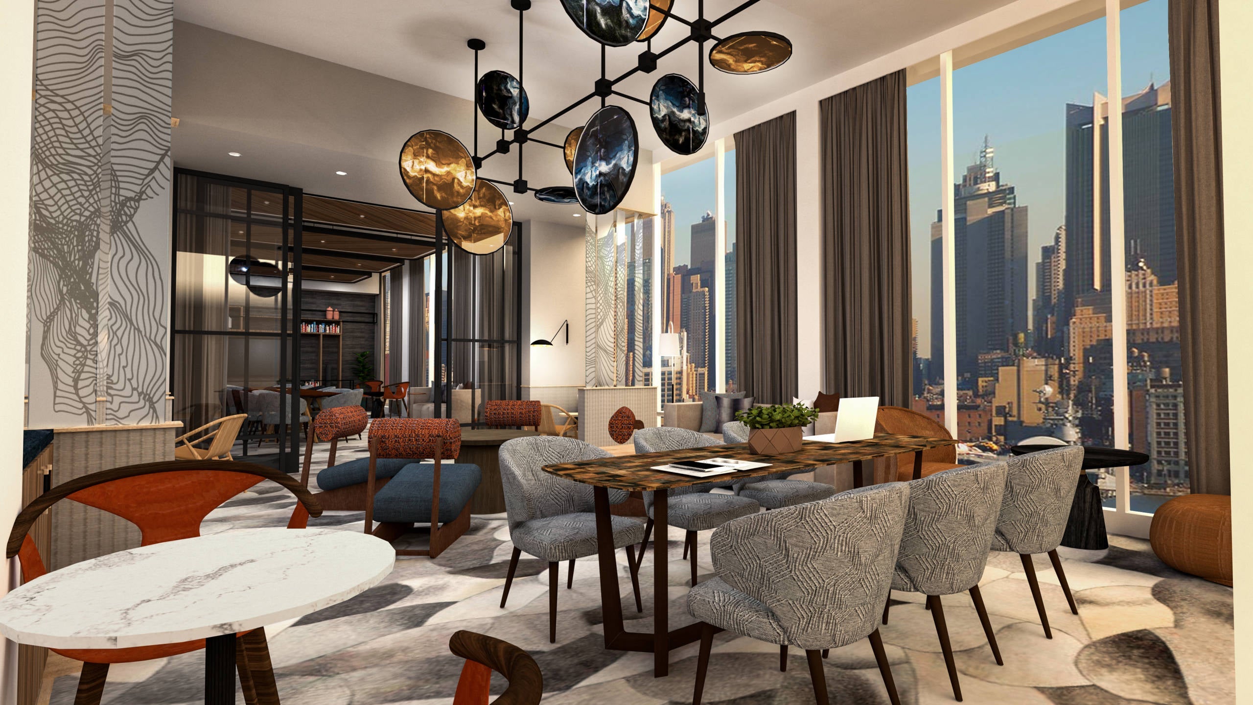 And, the emphasis on communal spaces in the lobby -- suitable for both working and socializing -- incorporating a bit of a WeWork model, if you will, is also familiar.
