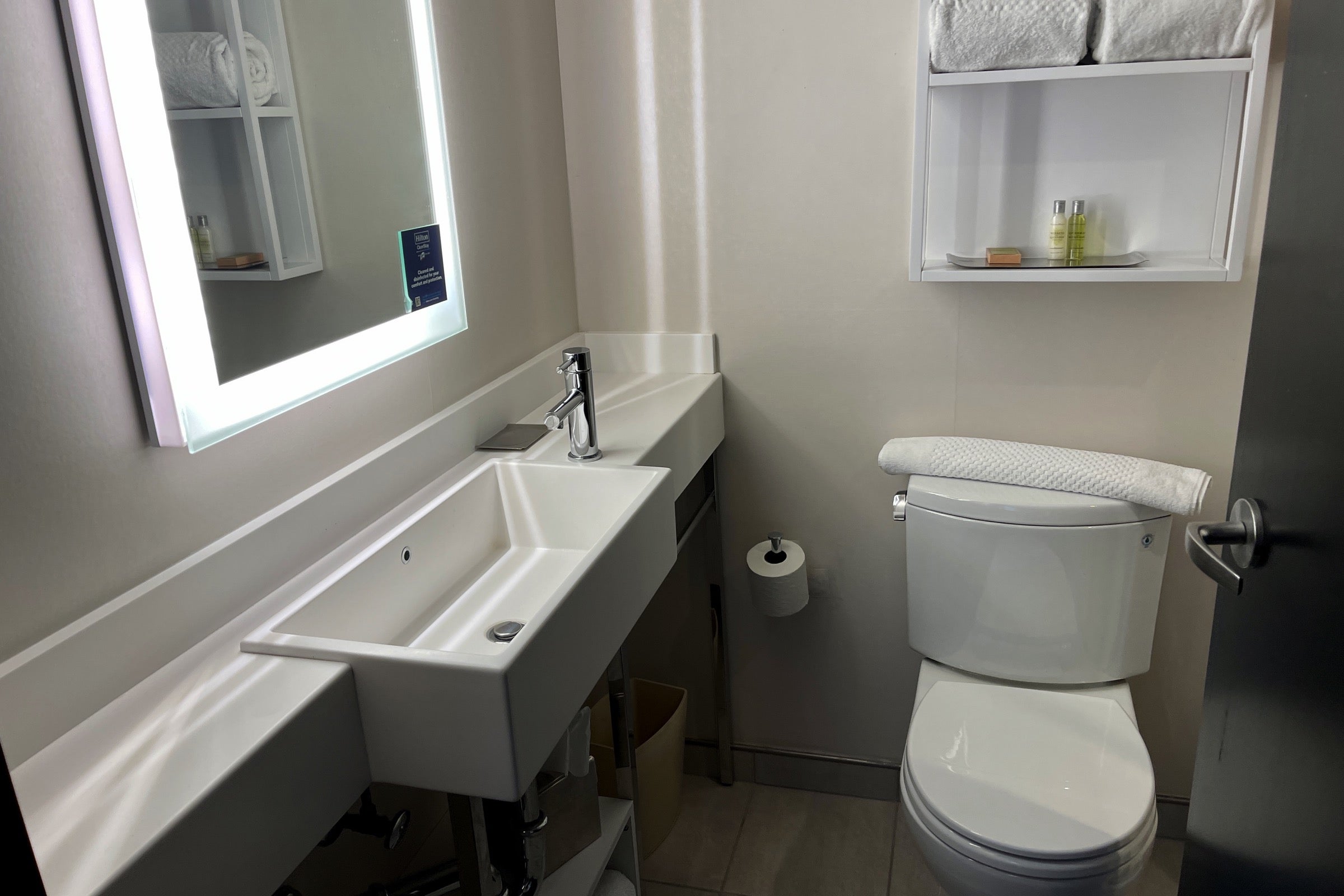 The bathroom and rest of the room were clean and looked ready for an overnight stay. Having access to a shower is nice too — especially if you bike to the hotel or have a long walk from the subway during a New York City summer.