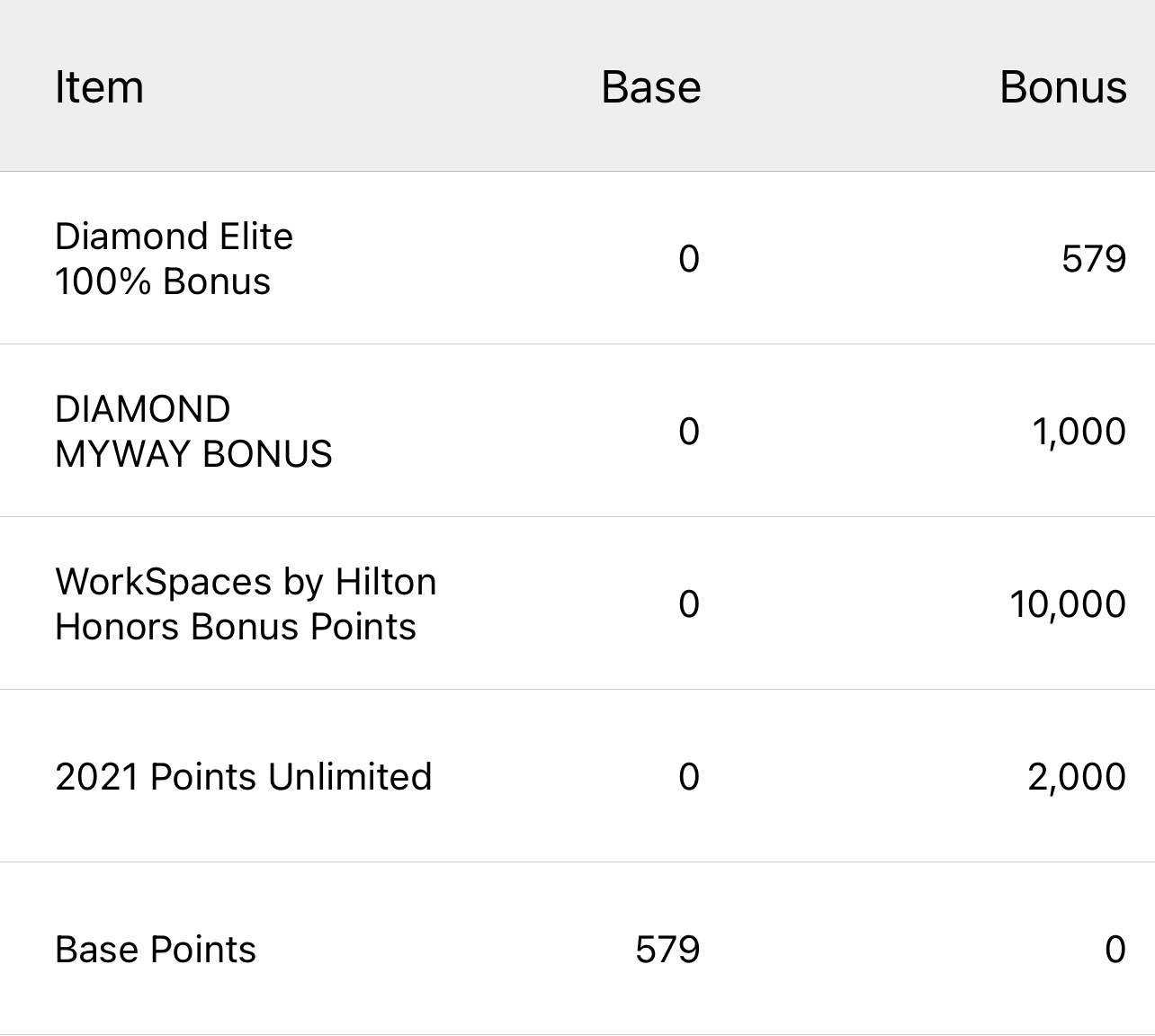 Further, Hilton is running a promotion dubbed "Points Unlimited" that awards 2,000 bonus points per stay. There's no minimum night requirement and WorkSpaces bookings are eligible, so I earned another 2,000 points. This is worth $12 based on our current valuation.