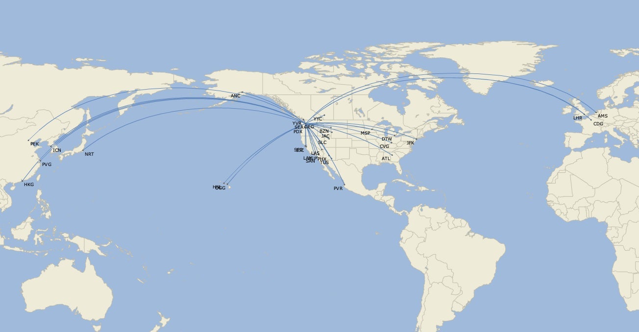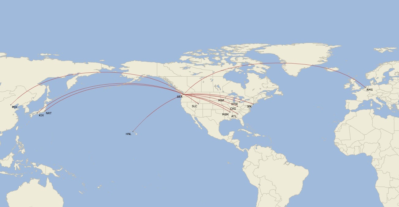 Delta added flights to Shanghai Pudong (PVG) and Tokyo Haneda (HND) from Seattle in 2013, Cirium shows. These routes, plus the others it already flew, were primarily supported by connections with then-codeshare partner Alaska.