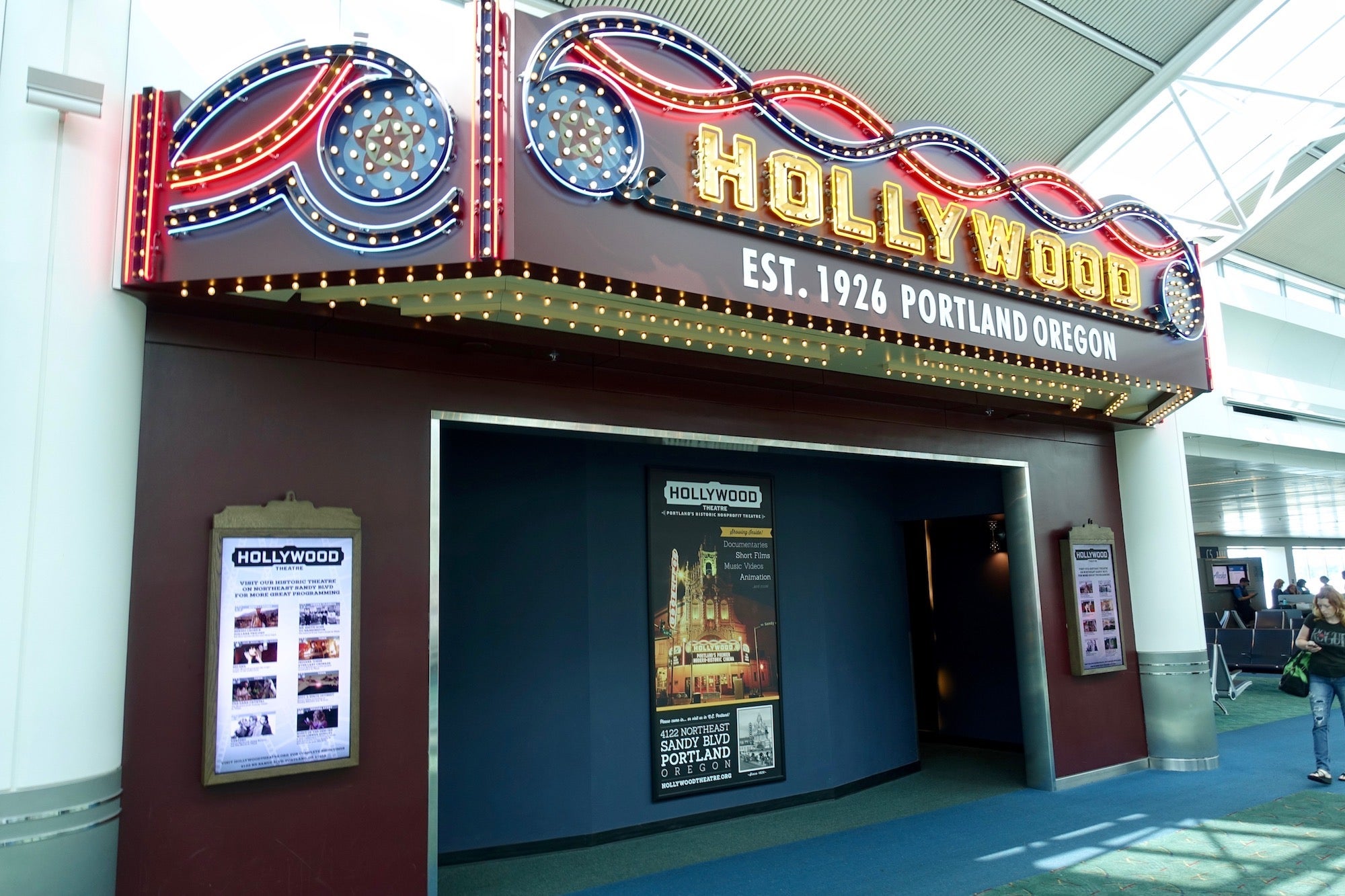 Between swimming pools, golf courses and beer gardens, there are some pretty crazy airport amenities out there. While most of them are found in airports outside of the US, there are a few exceptions. And one of those is a microcinema inside Portland International Airport (PDX): the Hollywood Theatre at PDX.