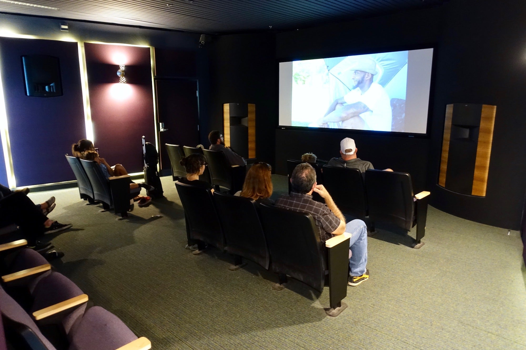 The theater itself has seating for 17 people, with standing room for another 10 to 20 people. The room's layout is very open so there's plenty of room for carry-ons and there are no faintly-lit stairs to haul your bags up or down. Although its day-to-day purpose is for screening films, the theater has space to accommodate live performances.
