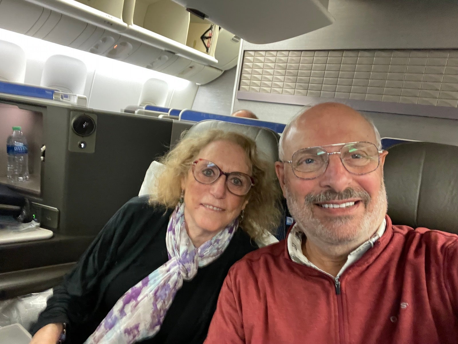 The flight was long enough that Mark enjoyed a "Top Gun: Maverick" rewatch and Joani commenced work on her art projects.