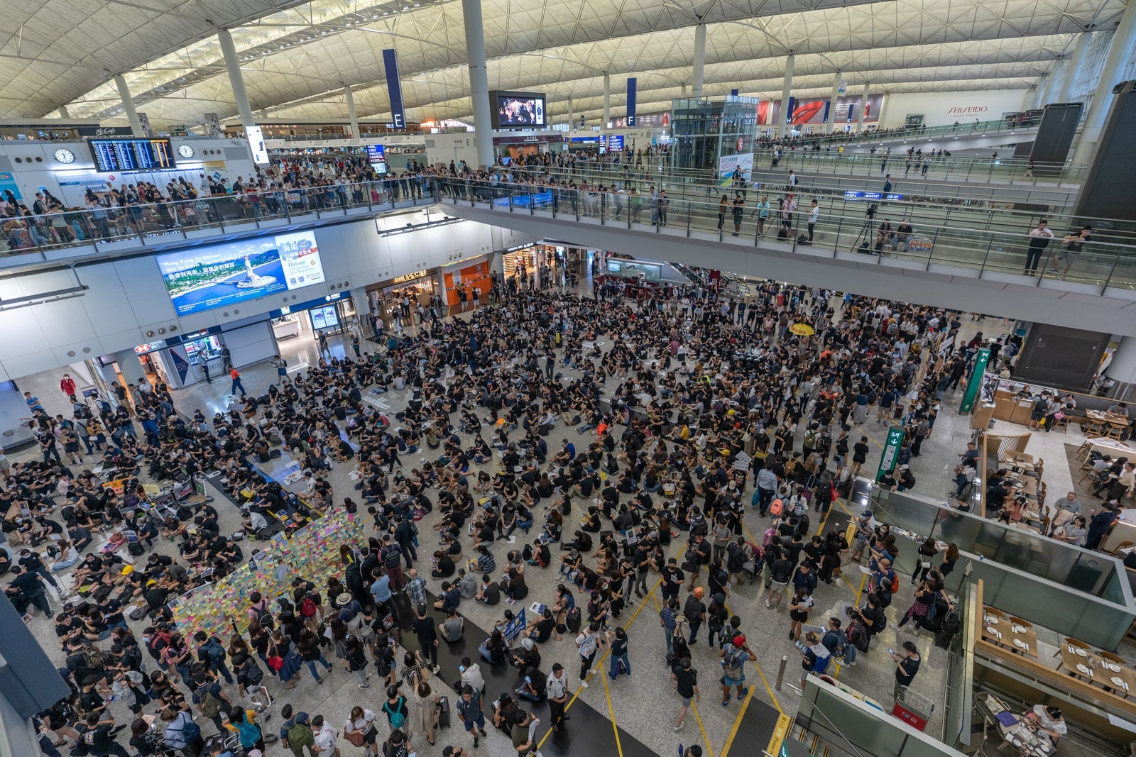 Today's sit-in is expected to run through Sunday, with the goal being to bring the protestors' message to international travelers, and follows on the heels of a city-wide strike that left hundreds of flights canceled and temporarily suspended Airport Express train service.