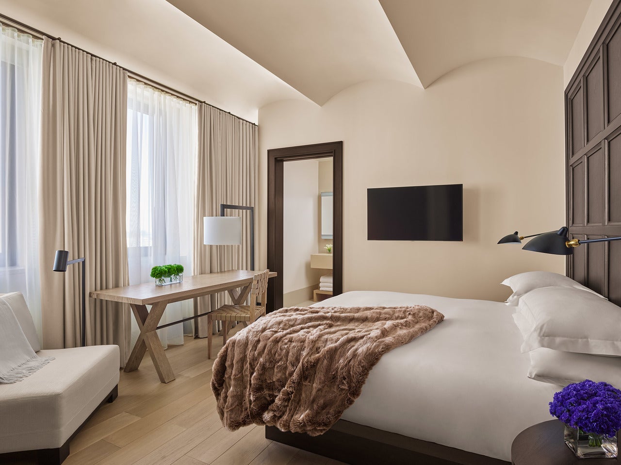 Downtown Manhattan welcomed its first Cipriani-family hotel this summer. Rooms at this Leading Hotels of the World property are cozy (or at least in line with New York City size standards) but bright and polished with luxe finishes like lacquered teak, chrome accents and white marble bathrooms. Book a Premier room for a private furnished terrace (opt for one with Brooklyn Bridge views) or a Mr. C Loft, which will overlook the East River and have a soaring ceiling.