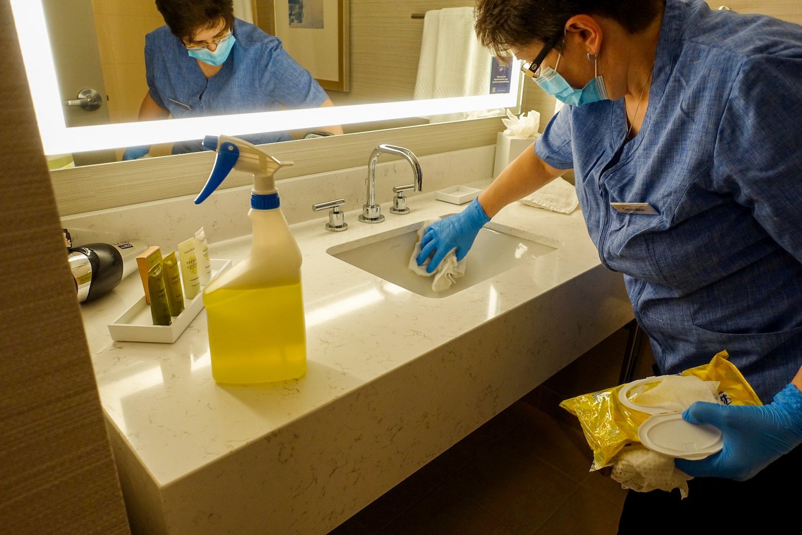 Early on, I took spray Lysol on every trip and sprayed everything when we stayed at a new hotel. Now, I'm not that diligent, but still take the Lysol just in case. We relaxed a little after being totally vaccinated. We just got back from Costa Rica and the resort's housekeeping wanted to come in daily and I found I didn't want them to. I told them we were good and needed nothing, but they kept wanting to come in. I think they were worried about their tip. So we left the same amount at the end of our stay that we would have had they come daily.