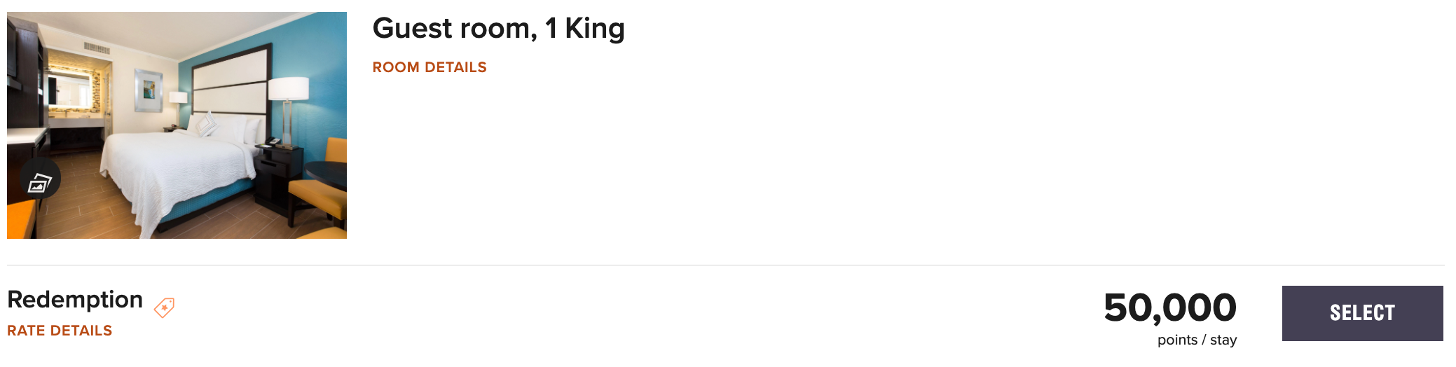 Here's another quick example: After a hasty scan, I've determined that the Fairfield Inn & Suites Key West costs between 40,000 and 60,000 points per night. This hotel's cash rates can get expensive, but no matter what, I know that I won't pay more than 60,000 points.