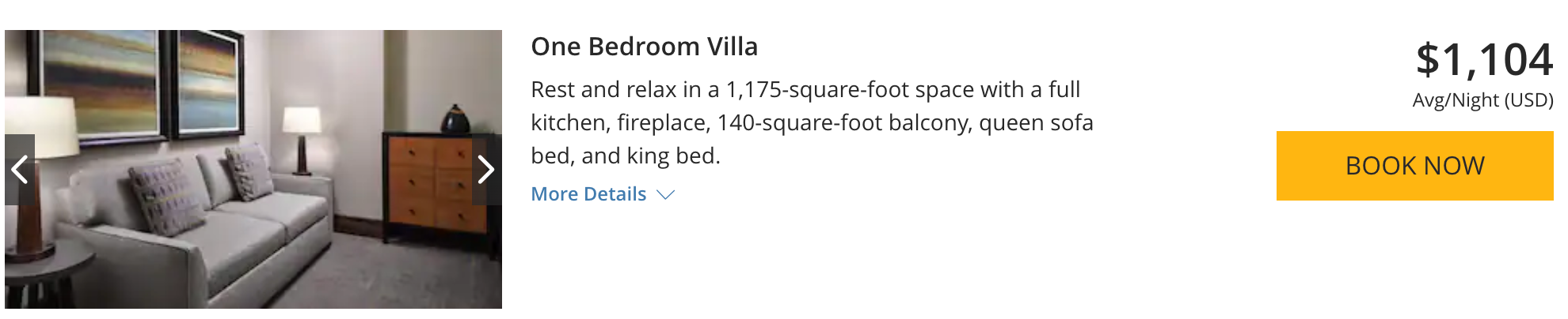 Here's another example: A super popular destination in the summer is Lake Tahoe. The nearby One Village Place is a Category 6 Hyatt hotel. For a night in mid-July, you'll pay over $1,200 (after taxes).