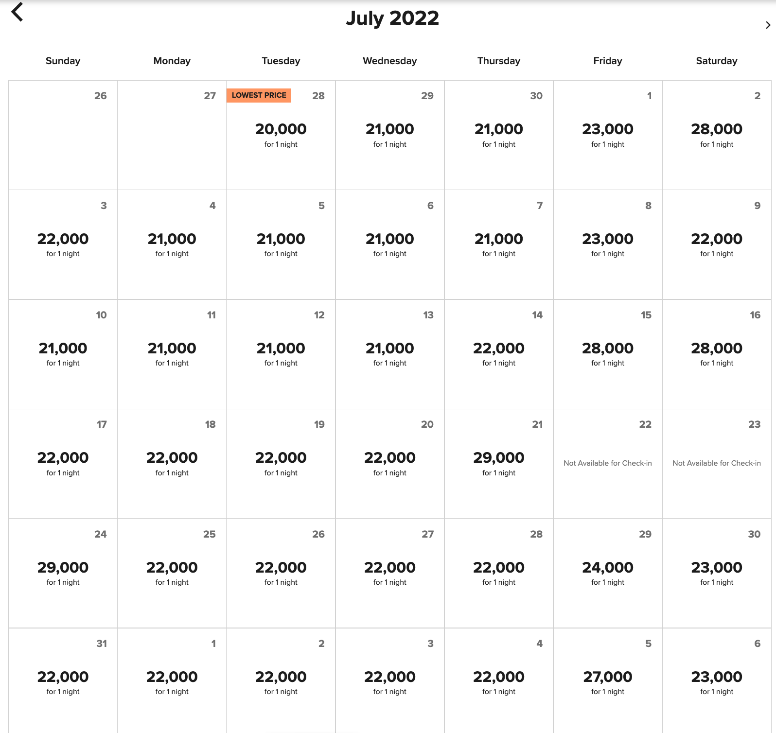 While Marriott no longer publishes an award chart, it keeps most hotels within a certain award price range, regardless of the going rate for a room. You can quickly discern a hotel's price range by clicking the "Use Points/Awards" checkbox and searching "Flexible Dates."