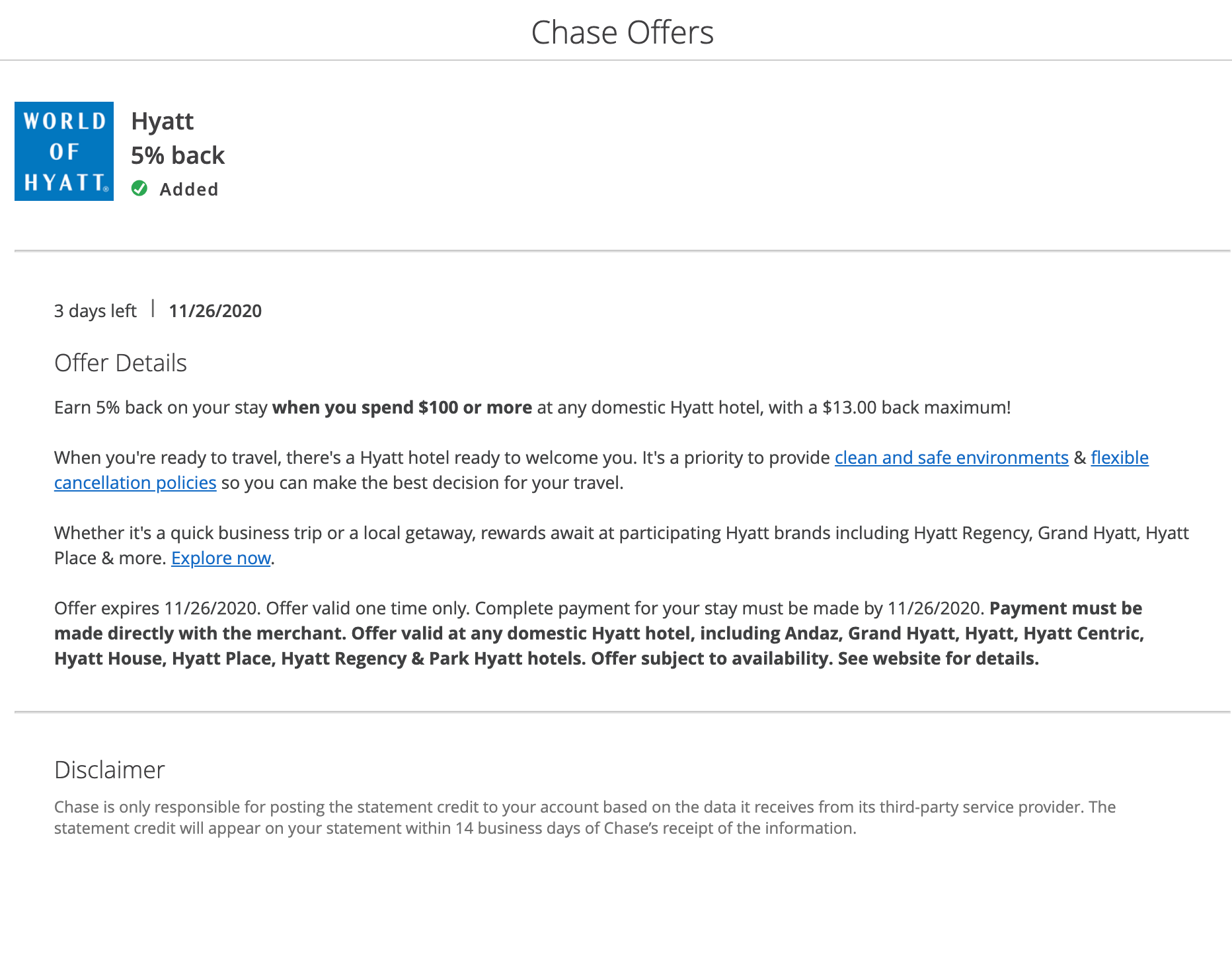 Because I wasn't already a Hyatt cardholder, I was able to get the 10 qualifying night credits. Those nights also counted toward earning status in 2021. Sadly, the offer expired on Dec. 31, 2020, but you can still get five bonus nights for holding the card.