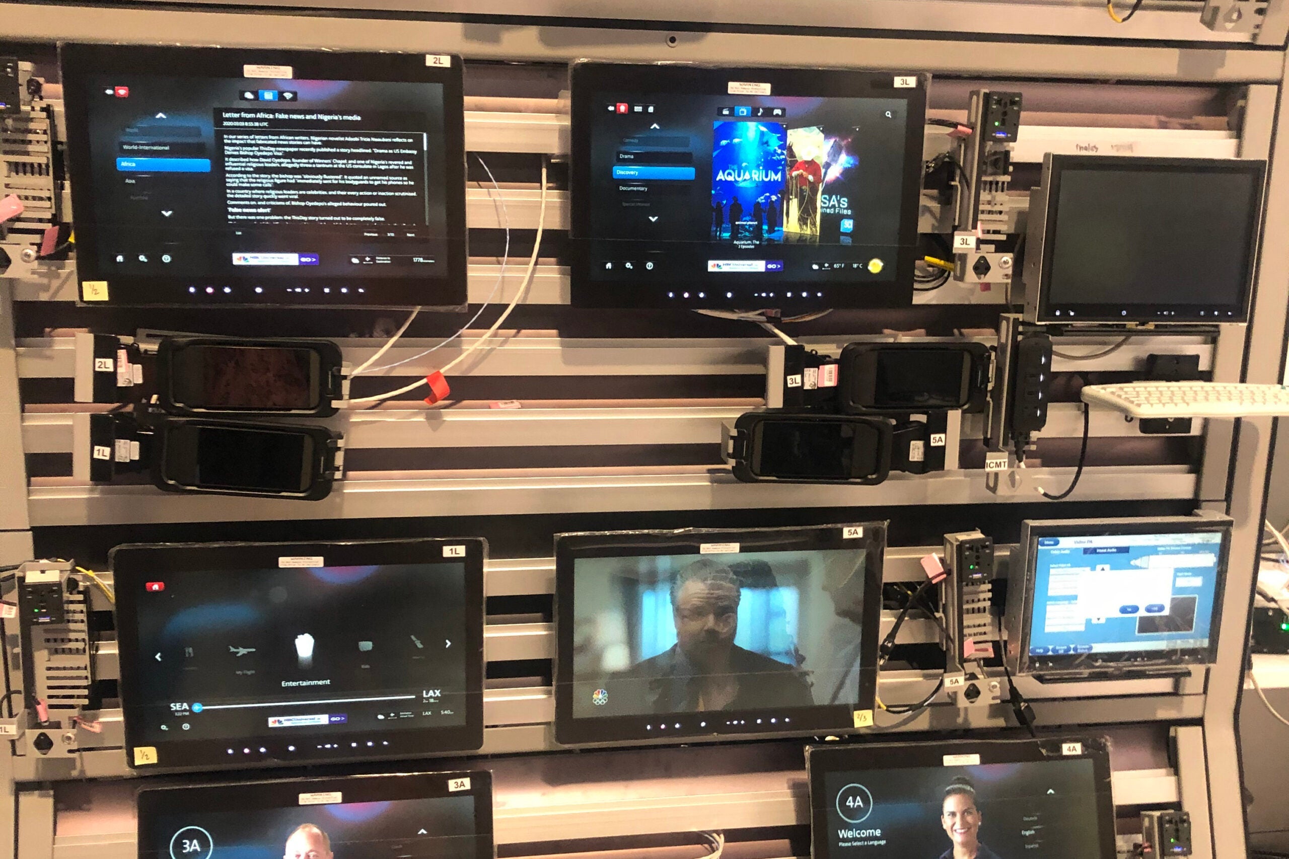 That process starts with quality testing. After obtaining the raw files from the studios, Spafax encodes the movie and then uploads it to an array of seat-back monitors for quality control.