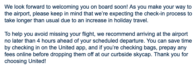 The message I received suggested "checking in on the United app," which wasn't an option for my trip to Curacao since an agent needed to verify my negative COVID-19 test.
