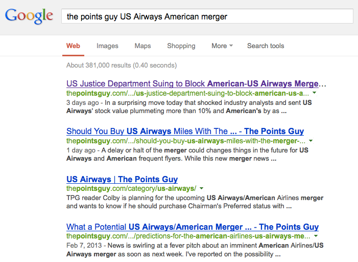 If worse comes to the worst and you are wondering about a specific topic or question, I might actually suggest one of two things. The first would be just go into Google and type in thepointsguy.com and whatever topic you are searching for, as there is a good chance that I have already written about your question in one way or another (and if you want me to update the post, e-mail me and I'll take it under consideration!). I've also got a great search function on the site, which you can find in the upper right-hand corner and it's powered by Google, so it's great at finding specific posts.