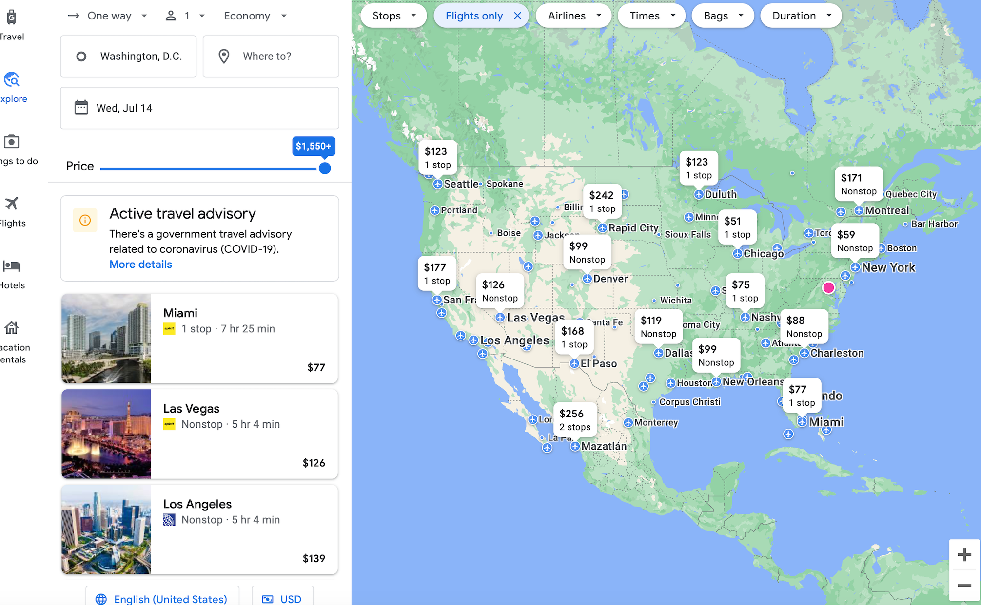 Some of my favorite uses of Google Flights that other websites and airlines don't always show are calendar views, multiple airport searches and map-based searches. It's an easy and all-inclusive engine to search your flights to see how different dates, times and airlines match up against each other.