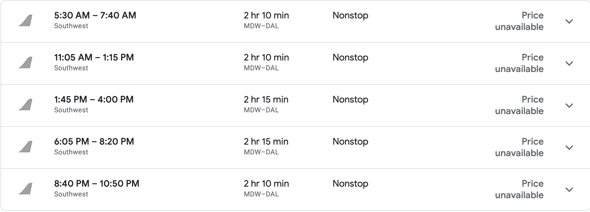 While you can't purchase your flights straight off Google Flights, I usually navigate to my selected airline's website after using it to find my desired time and flight fare. And then with airlines that don't display with Google Flights, like Southwest, you'll need to go to that airline's website directly.