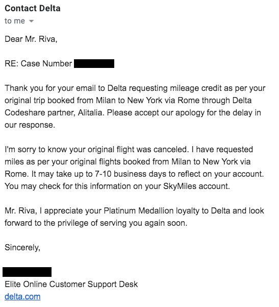 But I wanted Delta miles, not Alitalia miles, I said. No matter, she said: It would still have to be Alitalia's job to clear this up.