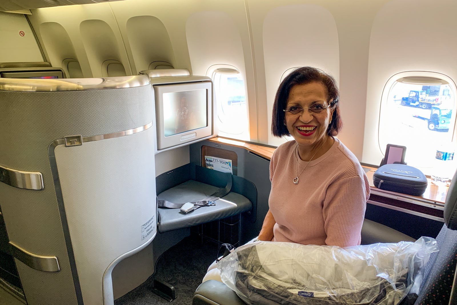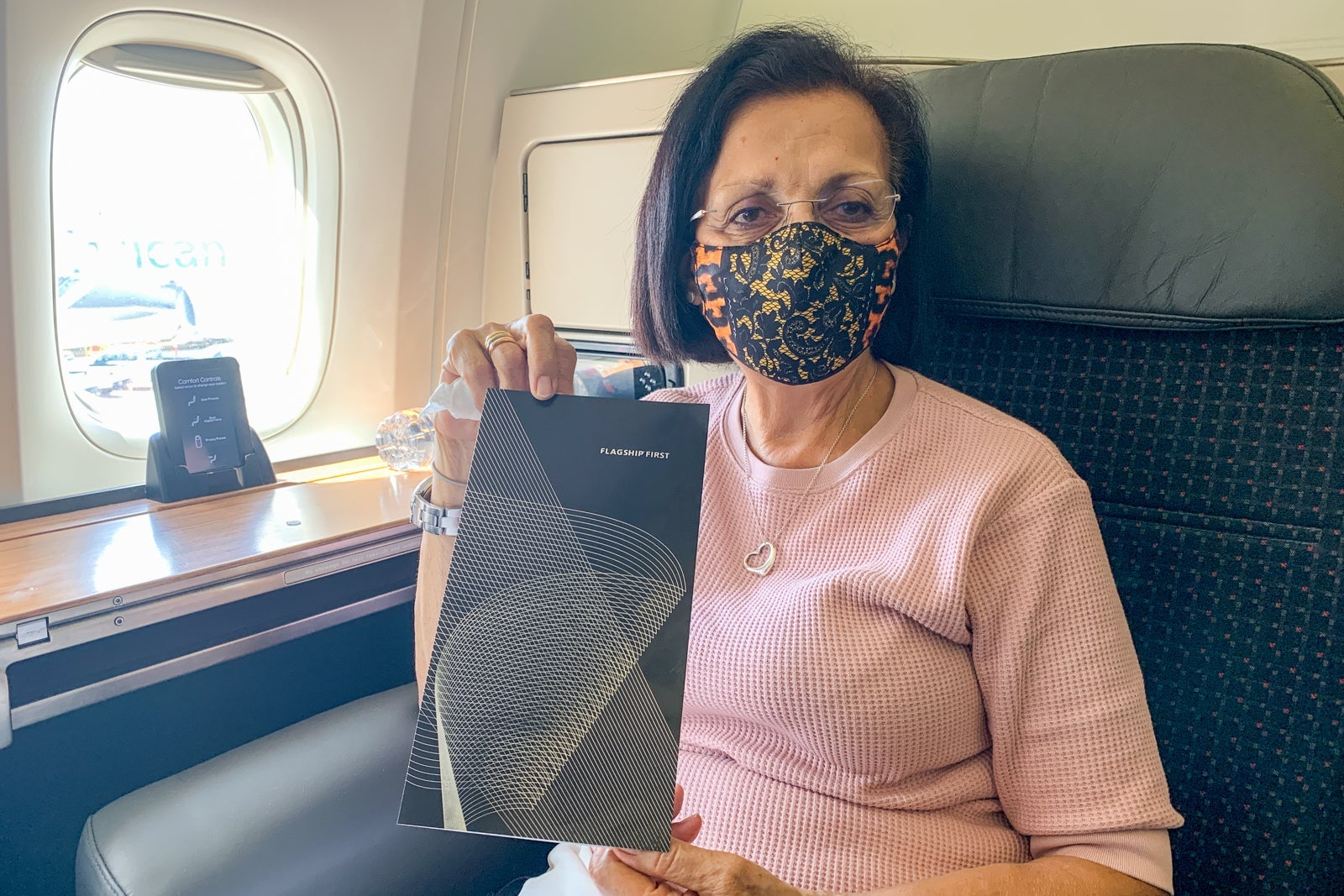 My mom had never stepped foot into a first-class cabin, let alone, in style, like flying American's Flagship First (as perhaps the most comfortable way to fly coast to coast in North America) — so our first flight would kick things off with a bang.