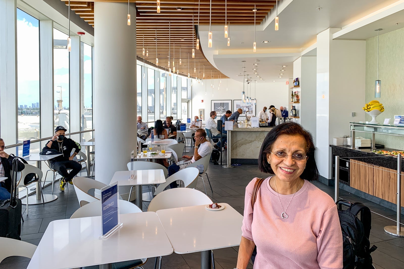 Once past security, we had access to American's Admirals Club (free access for passengers flying Flagship First on their day of travel), but instead, we made our way to the Amex Centurion Lounge for lunch and a glass of wine before boarding our flight. One of the main reasons I'm a cardholder of The Platinum Card® from American Express is to gain airport lounge access and visit swanky Amex Centurion lounges. With a new Centurion Lounge guesting policy looming in February 2023, I had to let mom experience Amex's posh lounge for herself.