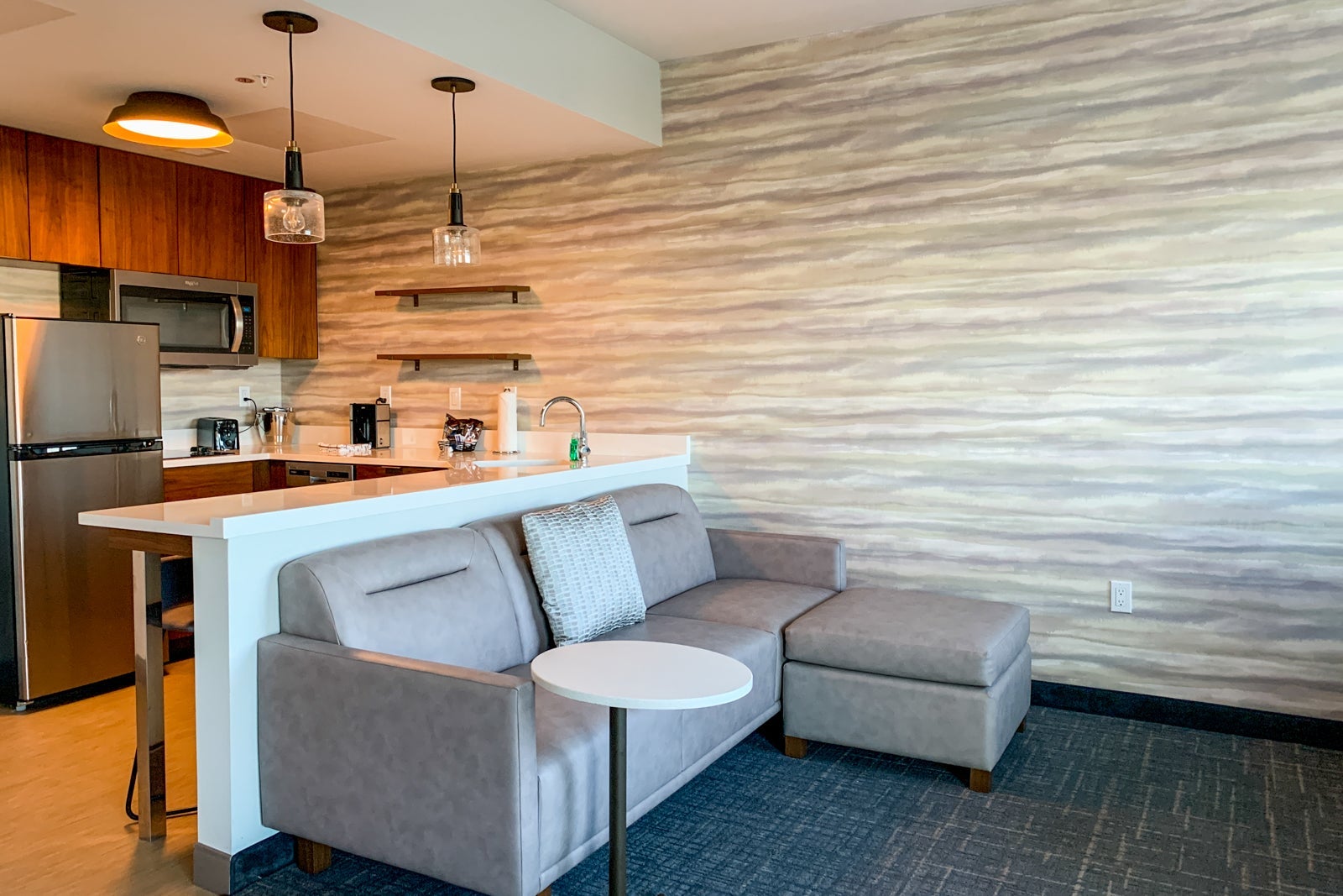 Our stylish king studio room had a separate living room space with a full kitchen and a full-size refrigerator.