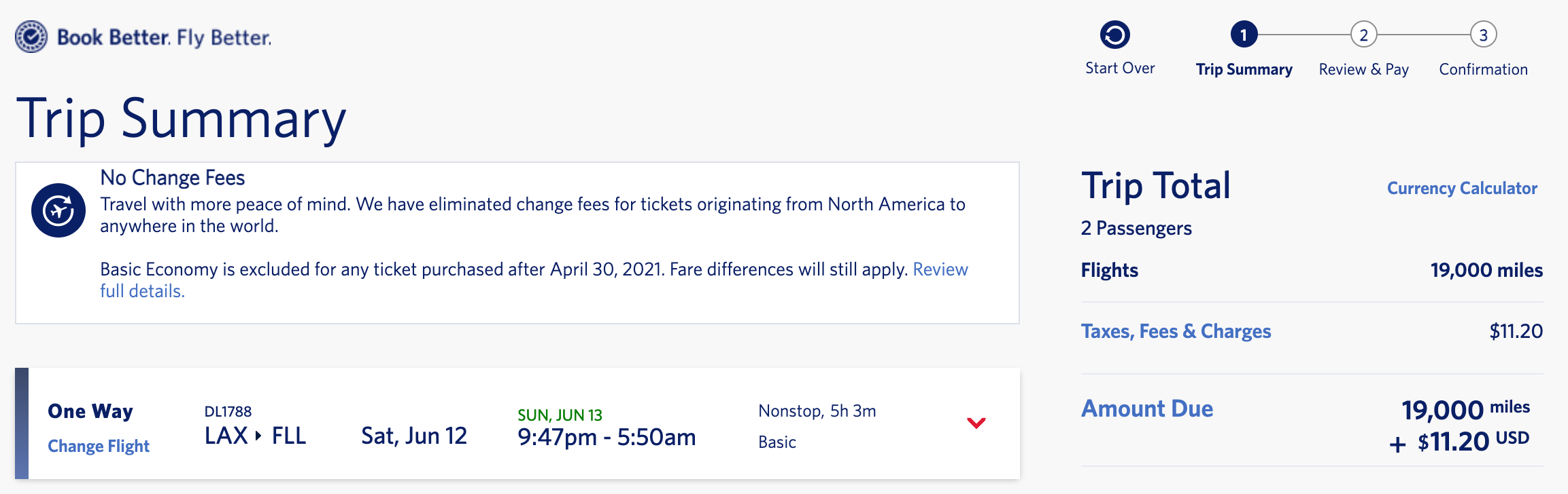 But instead, I opted to transfer American Express Membership Rewards points directly to Delta at a 1:1 ratio and book each ticket for 9,500 miles. We value SkyMiles at just 1.1 cents each here at TPG — so my 9,500-mile redemption per ticket earned me a higher value of 1.5 cents per mile.