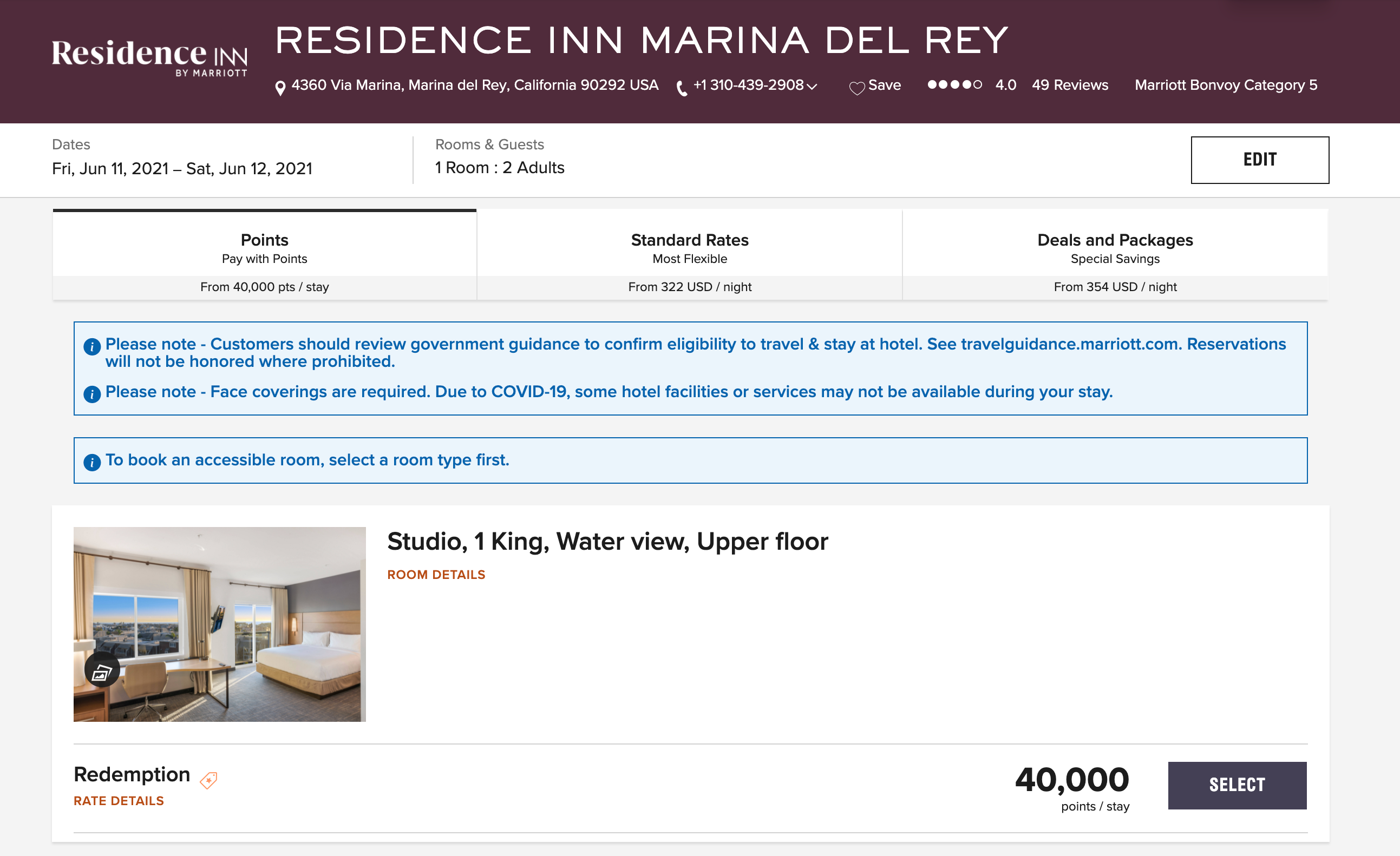 I transferred 29,000 Membership Rewards points to my Marriott Bonvoy account, which resulted in 40,600 Bonvoy points and locked in the stylish and brand-new Residence Inn Marina Del Rey hotel for 40,000 points the night.